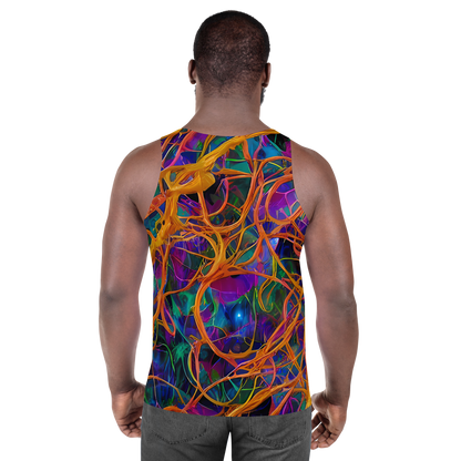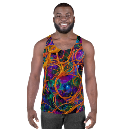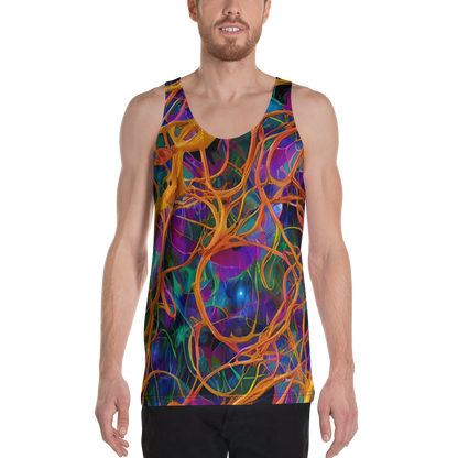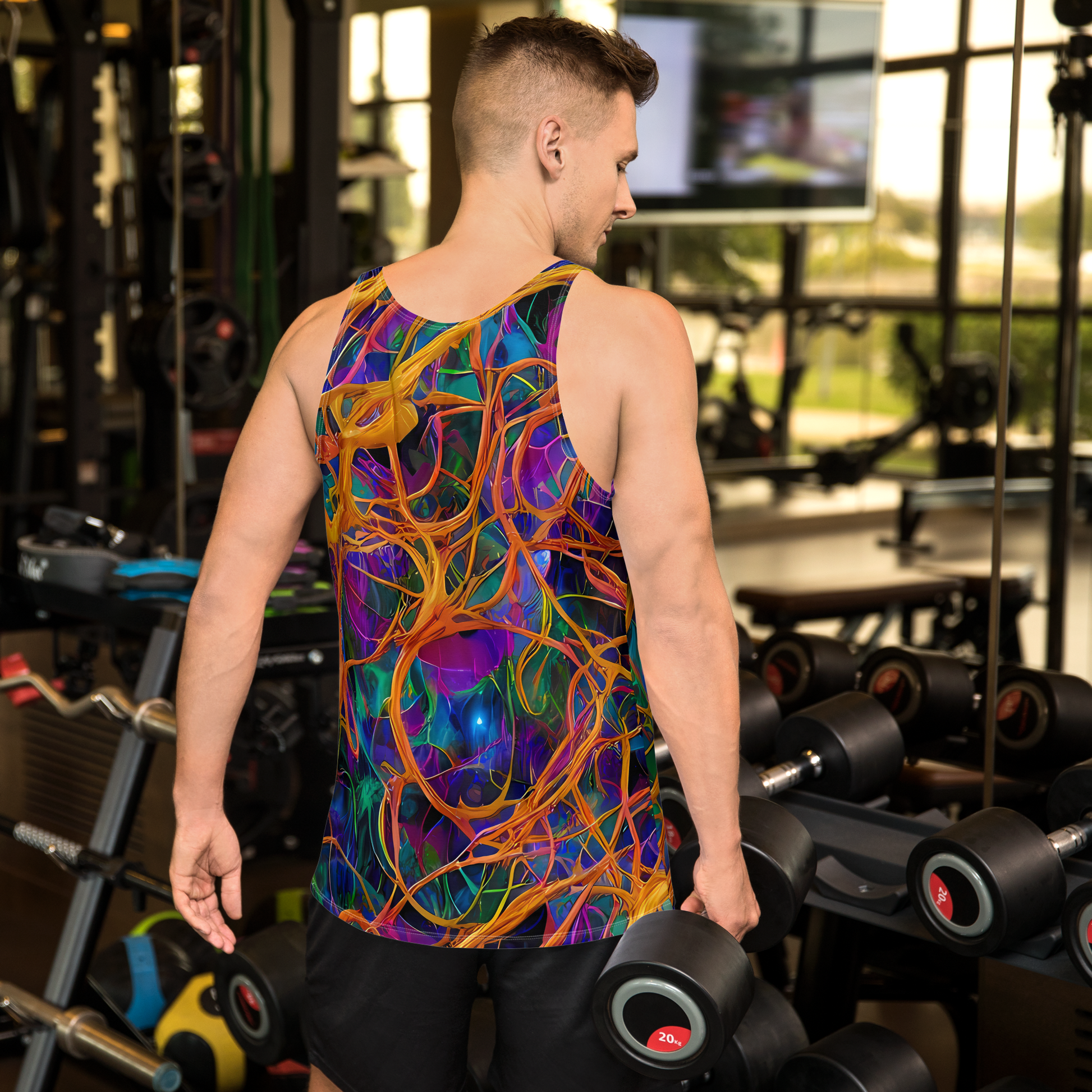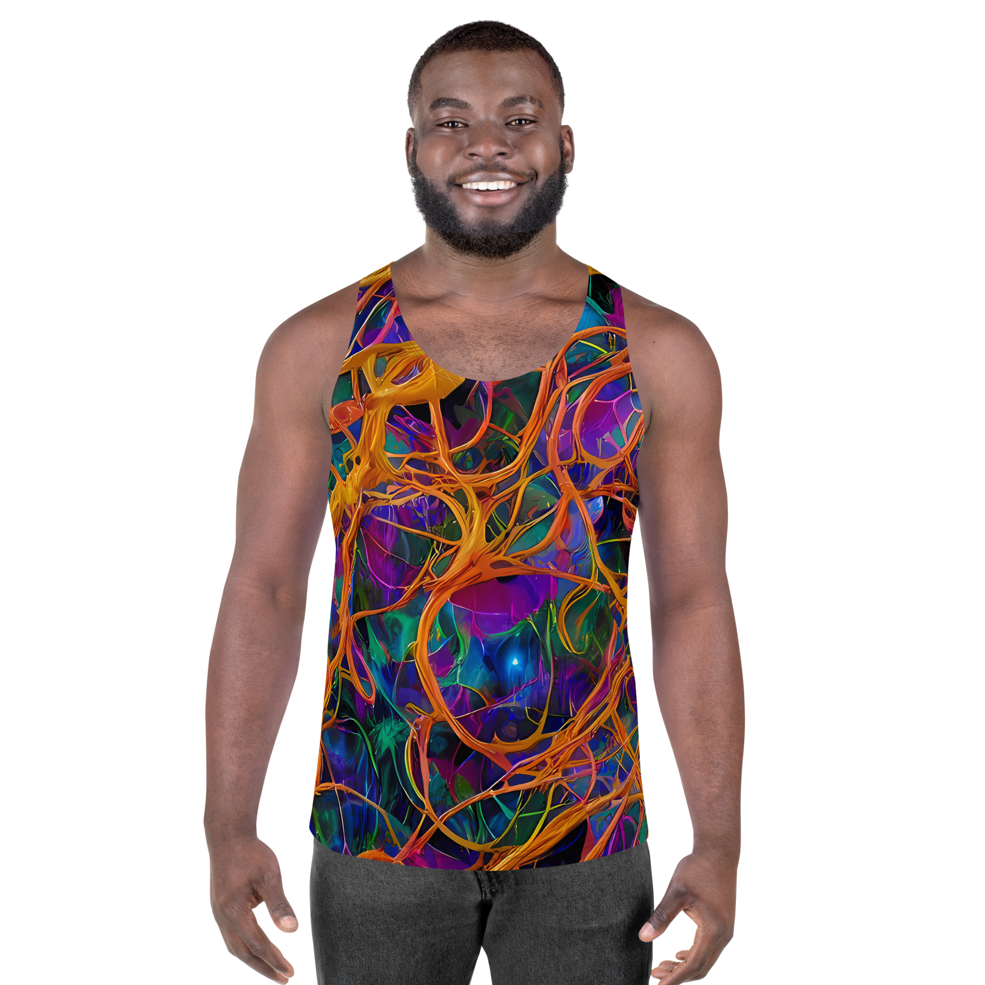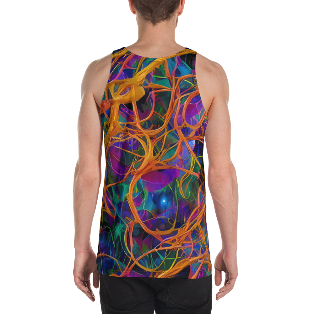Unleash the artist within and make a statement with our Men's Tank Top featuring the exclusive "Spectral Weave" pattern. Electric orange strands dance over a mesmerizing deep blue and purple backdrop, crafting a tank top that pulses with life and vibrancy. Perfect for the bold and creative spirit, this piece guarantees you'll be the embodiment of avant-garde style during the spring and summer festivities.