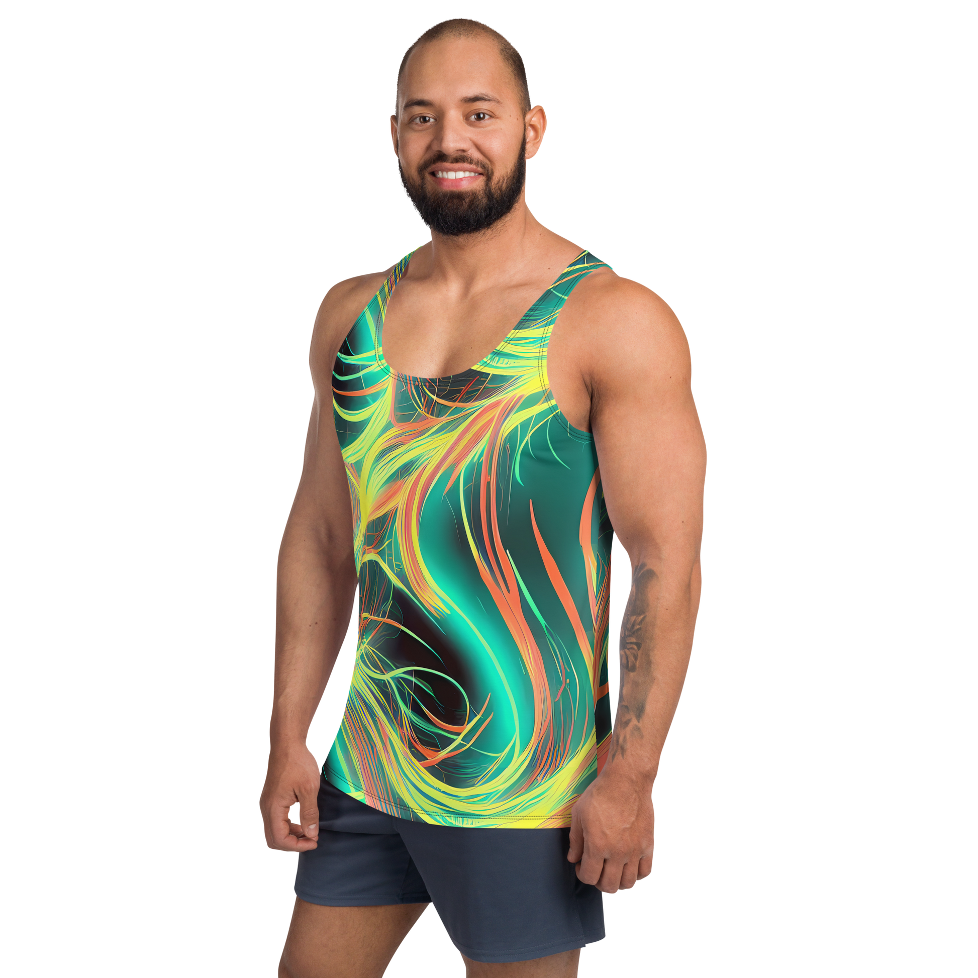 Unleash your artistic spirit with our "Vital Strands" Men's Tank Top, where vibrant fluorescent orange and yellow tendrils dance against a deep teal backdrop, creating a striking visual that embodies dynamic energy and organic movement. This tank top is not just a piece of clothing; it's a statement of individuality and creativity, perfect for summer festivals or any event where you want to stand out. Experience the blend of unbeatable comfort and bold style that will elevate your wardrobe!
