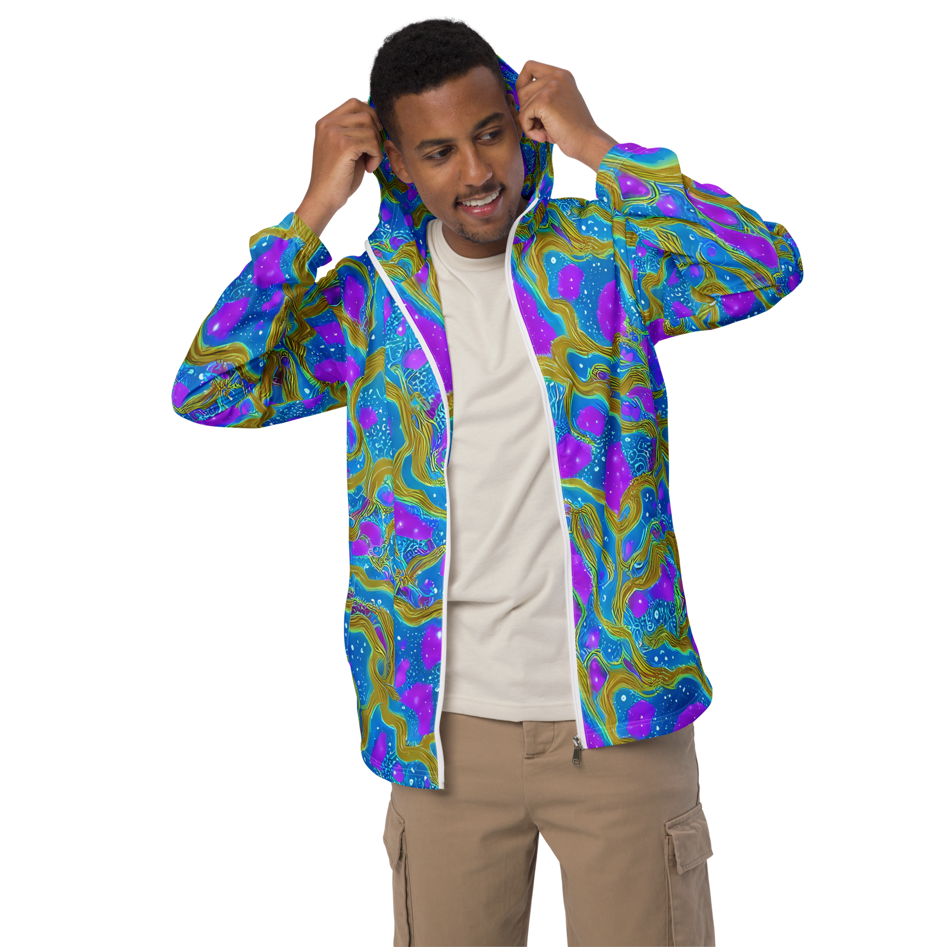 Unleash your inner artist with our "Mystic Waves" Men's Windbreaker, a masterpiece of swirling azure blues, electric purples, and shimmering gold lines. This vibrant pattern is a celebration of creativity and whimsy, perfect for those who dare to stand out at summer festivals or evening art gallery events. Designed for the bold and imaginative, this windbreaker combines style with practicality, ensuring you remain both fashionable and protected against the elements.