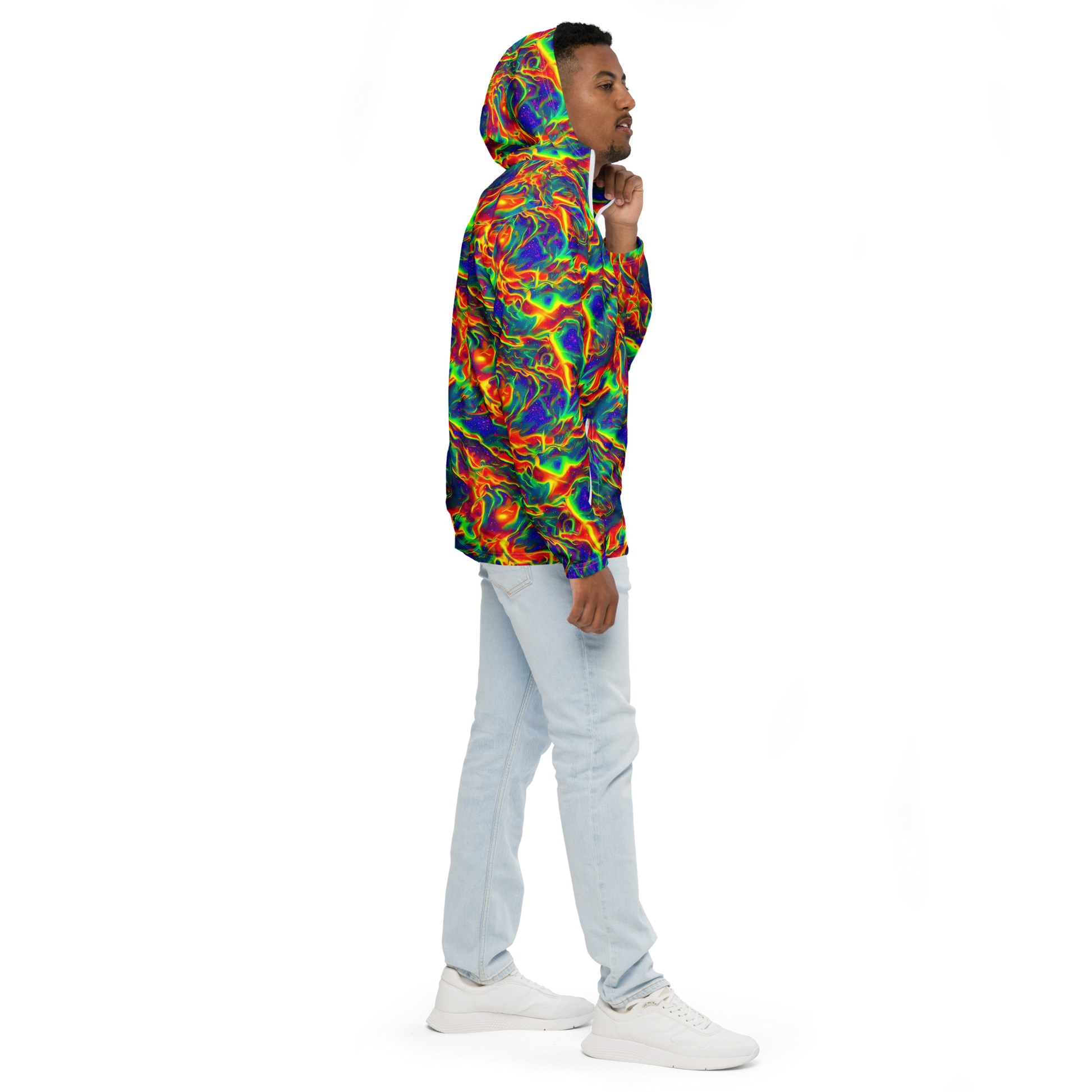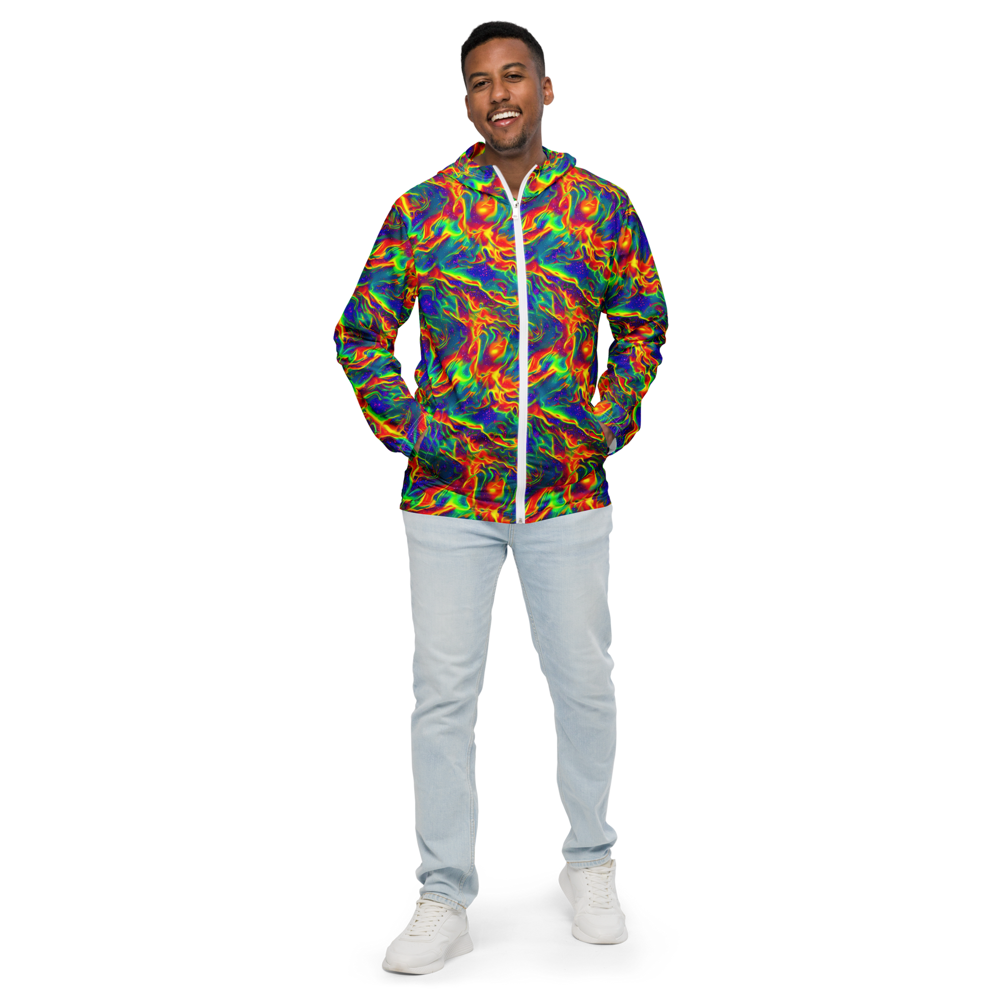 Unleash your individuality with our "Nebula Symphony" Men's Windbreaker, where vibrant neon colors swirl together in a cosmic dance, making a bold statement wherever you go. This AI-designed lightweight windbreaker not only showcases a mesmerizing tapestry of electric blues, fiery oranges, and radiant greens but also keeps you stylishly shielded against unpredictable weather. Perfect for music festivals, art shows, or any creative gathering, it’s the ultimate blend of fashion and function for the modern man.