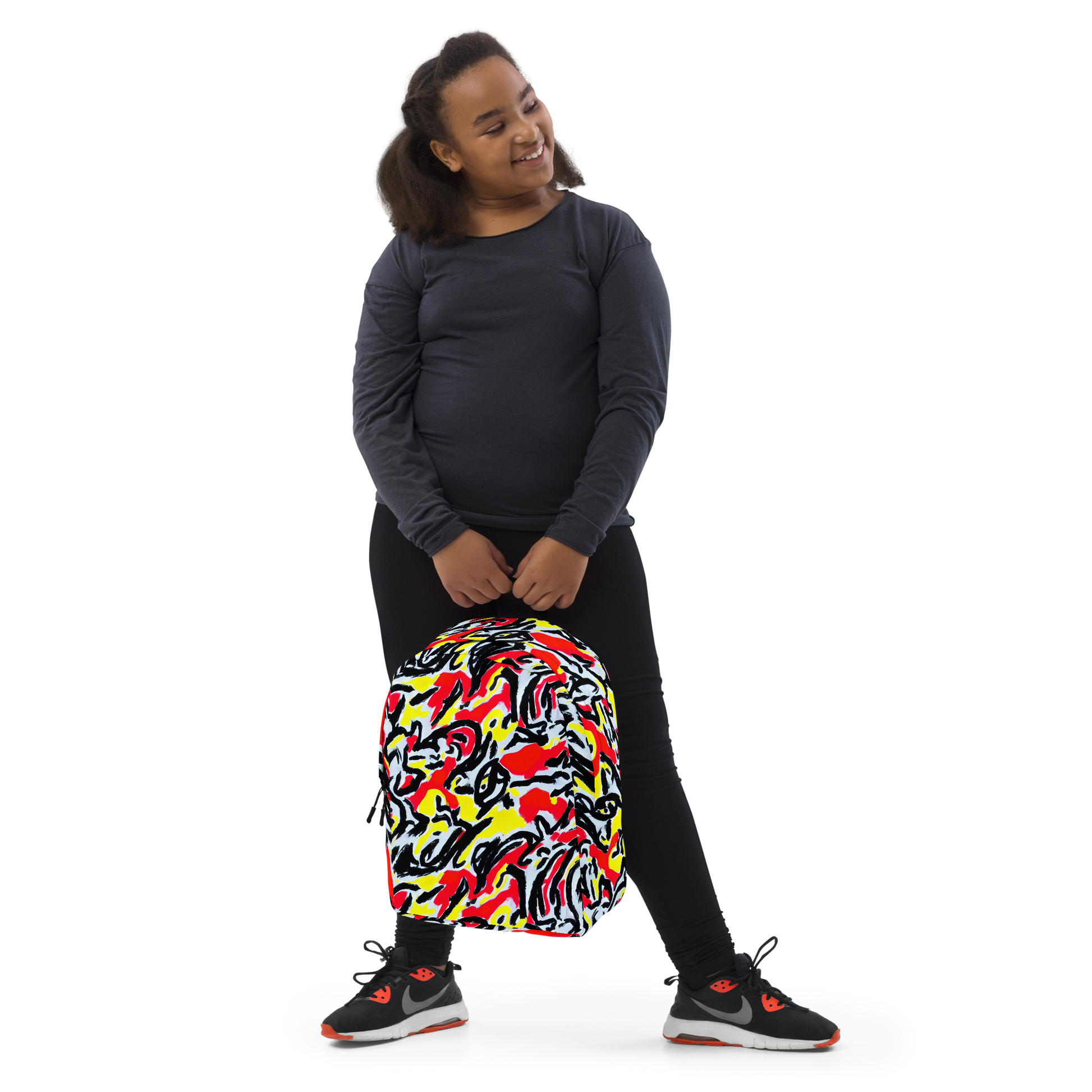 Unleash your inner artist with our AI-designed Minimalist Backpack, featuring an electrifying pattern of sweeping black strokes against a backdrop of fiery reds, sunny yellows, and stark whites. This dynamic design captures the essence of motion and intensity, making it the ultimate statement piece for music festivals, art exhibitions, or any vibrant gathering. Perfectly blending style and functionality, this backpack ensures your essentials are carried with flair and security.