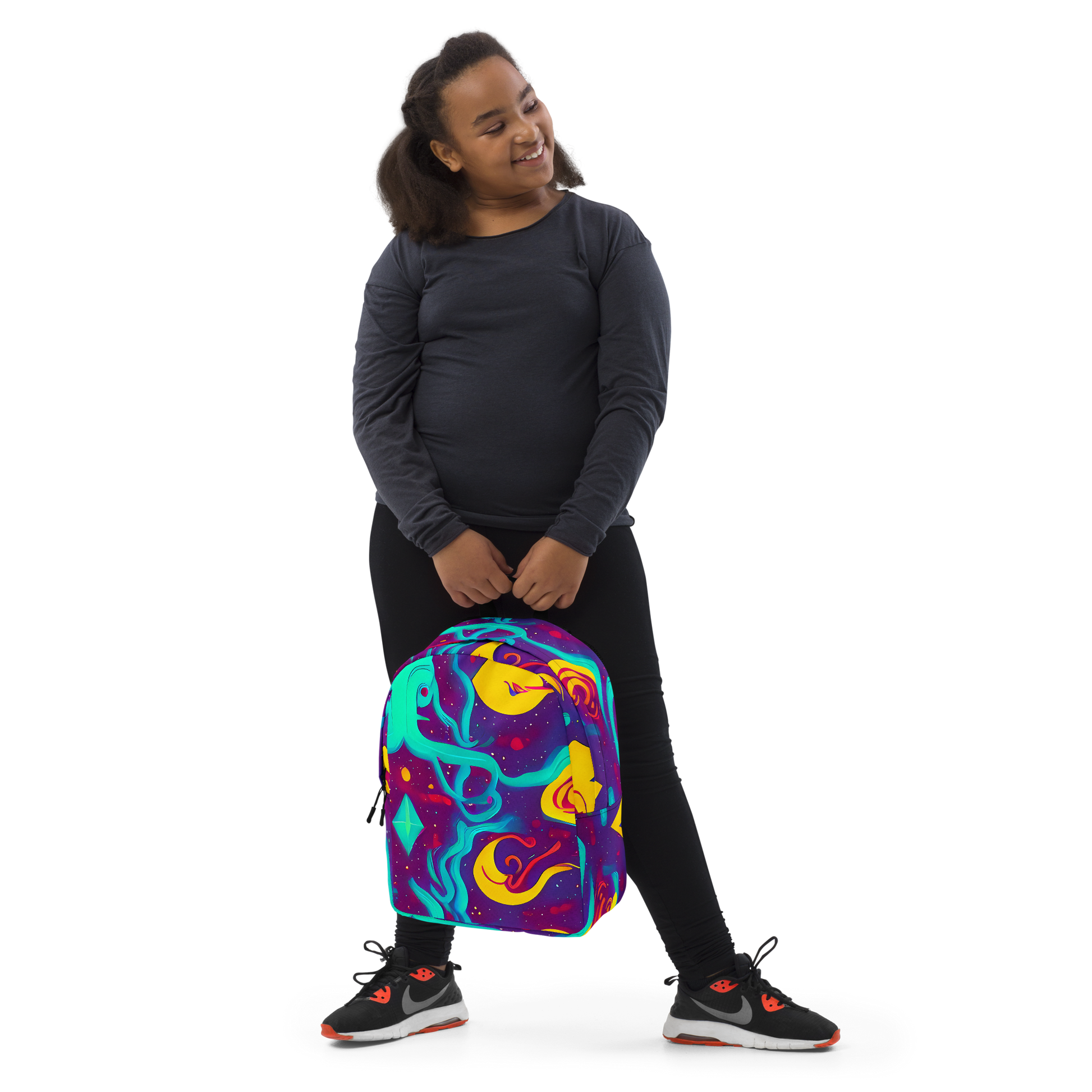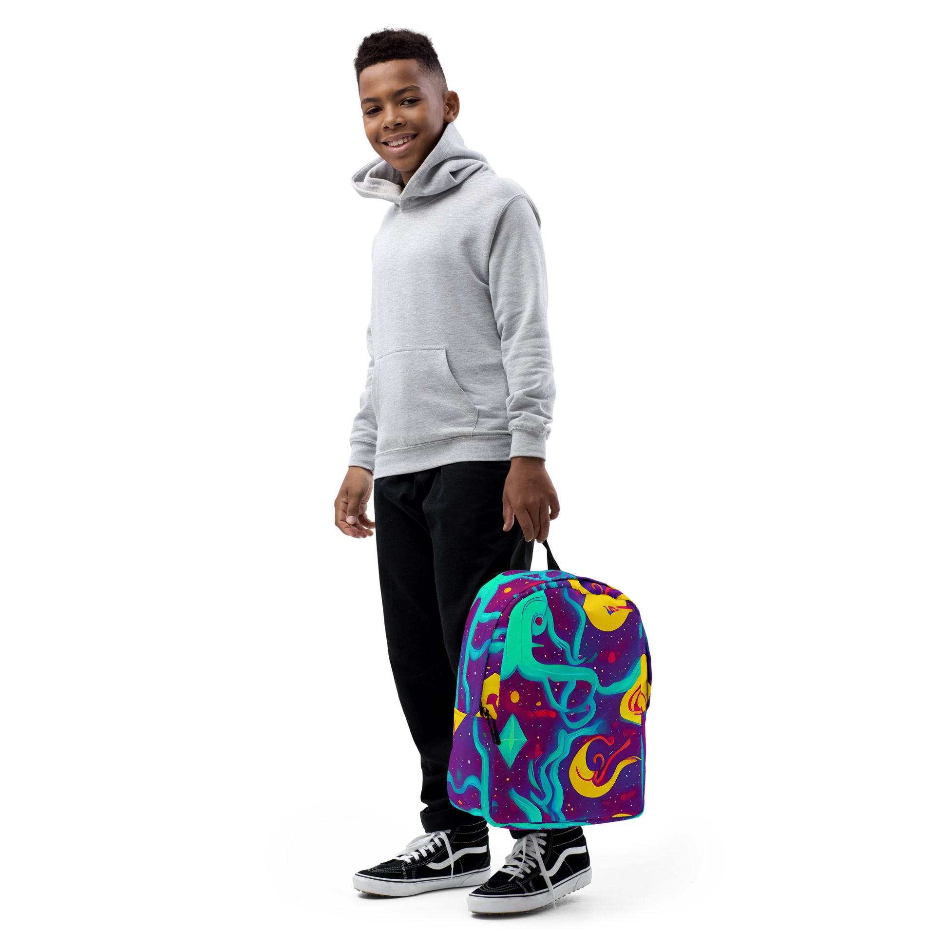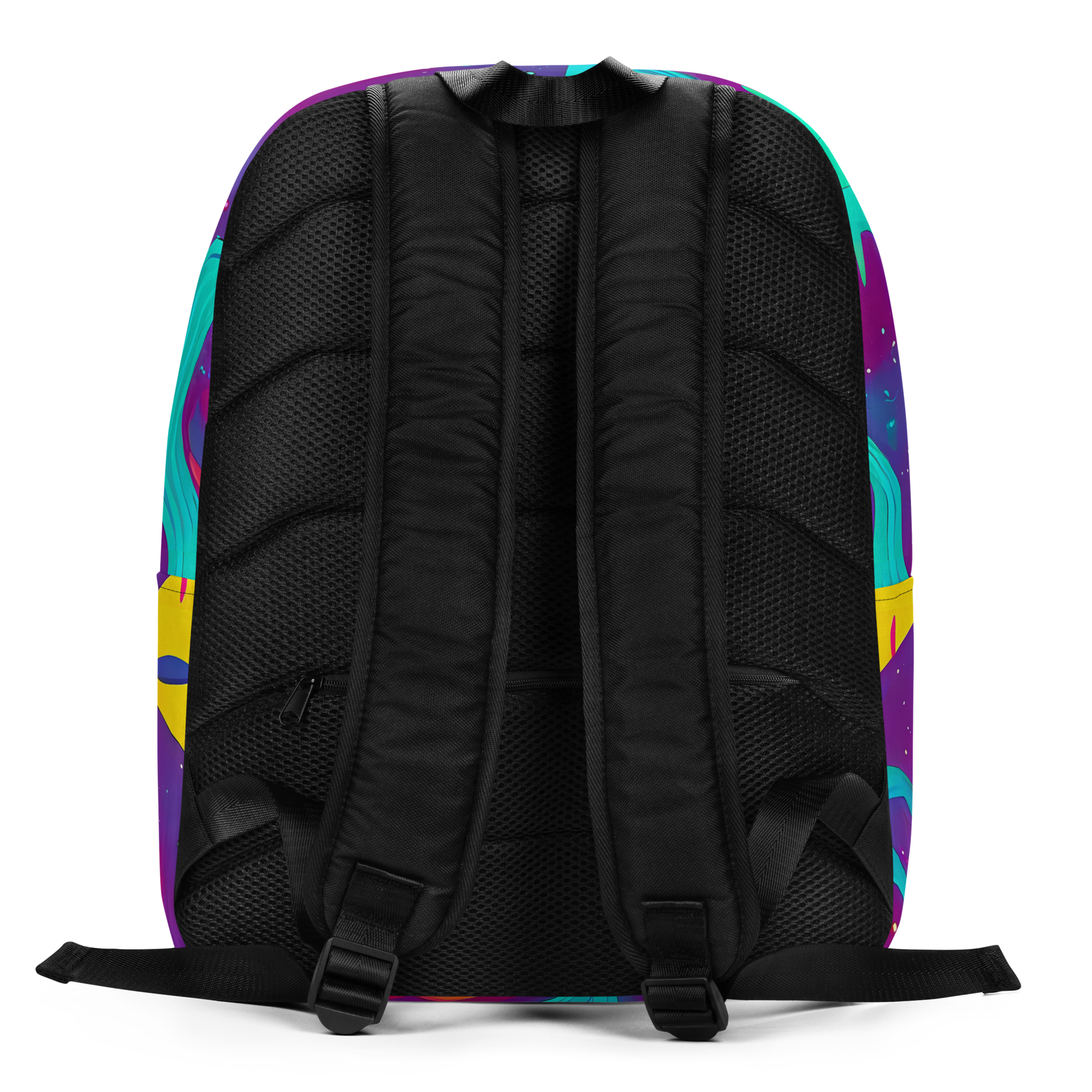 Transform your journey into a celestial voyage with our minimalist backpack, adorned with a vibrant tapestry of electric blues, vivid purples, and neon yellows. This backpack captures the essence of an otherworldly dance, with abstract shapes and fluid lines that suggest a dynamic sense of movement. Speckles that mimic distant stars add a textured touch, perfect for those who carry the spirit of adventure and creativity. Whether you're heading to a music festival or navigating the urban jungle, this backpack will make sure you stand out in the most stylish way possible.