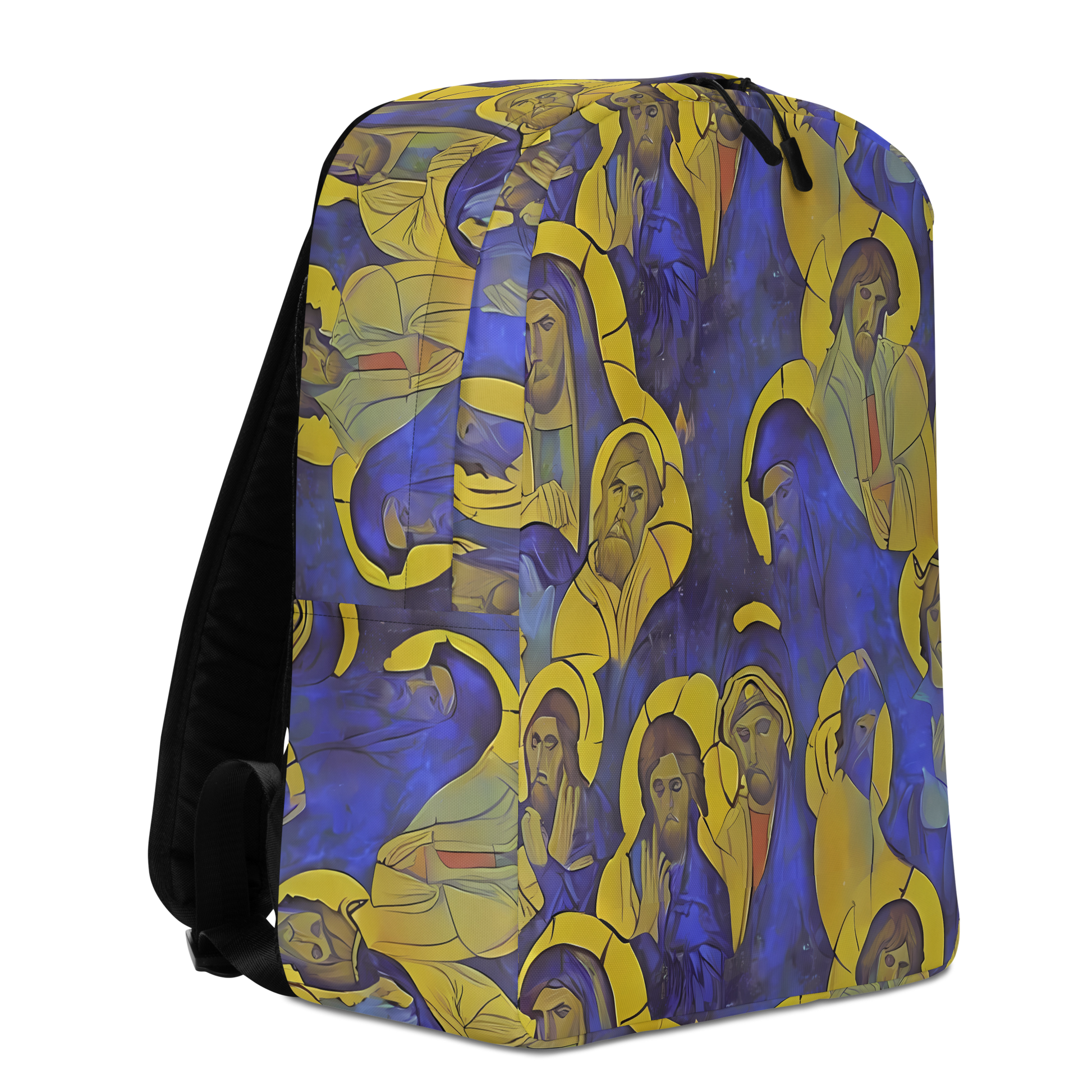 Step into a world of elegance and creativity with our "Divine Reverie" Minimalist Backpack. Adorned with an ethereal tapestry of deep cosmic blues and golden halos, this backpack is not just an accessory but a statement of introspective serenity and avant-garde sophistication. Perfect for the dreamer on the go, it seamlessly blends style with functionality, making it the ideal companion for art exhibitions, evening gatherings, or your daily adventures.