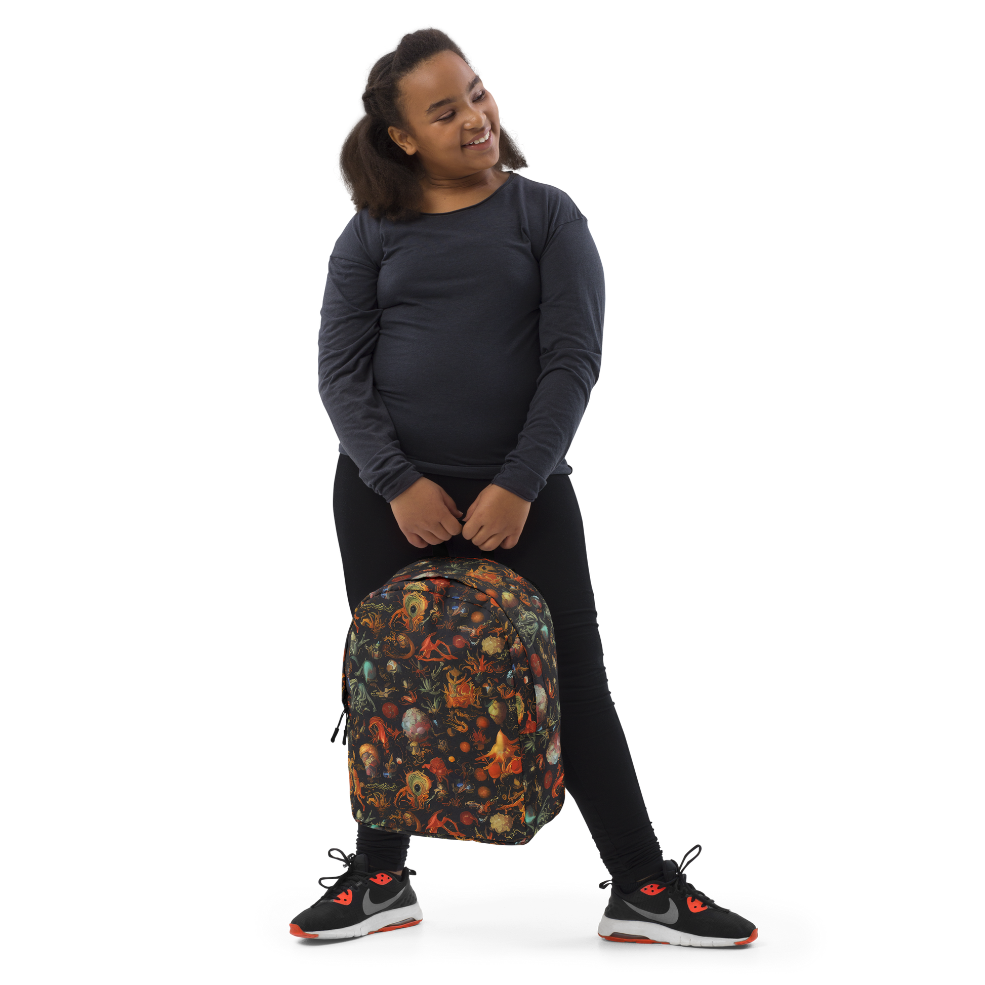 Step into a world where classic artistry meets cosmic wonder with our exclusive Minimalist Backpack, featuring a hypnotic design that fuses vibrant florals with astral motifs. The dark, space-like canvas sets the stage for a riot of colors, as oranges, reds, blues, and yellows dance amidst celestial orbs and abstract shapes. Inspired by the Dutch Golden Age yet reimagined through a modern, psychedelic lens, this backpack is a must-have for trendsetters and art lovers alike, seeking to express their unique style in any setting—from creative gatherings to everyday jaunts.