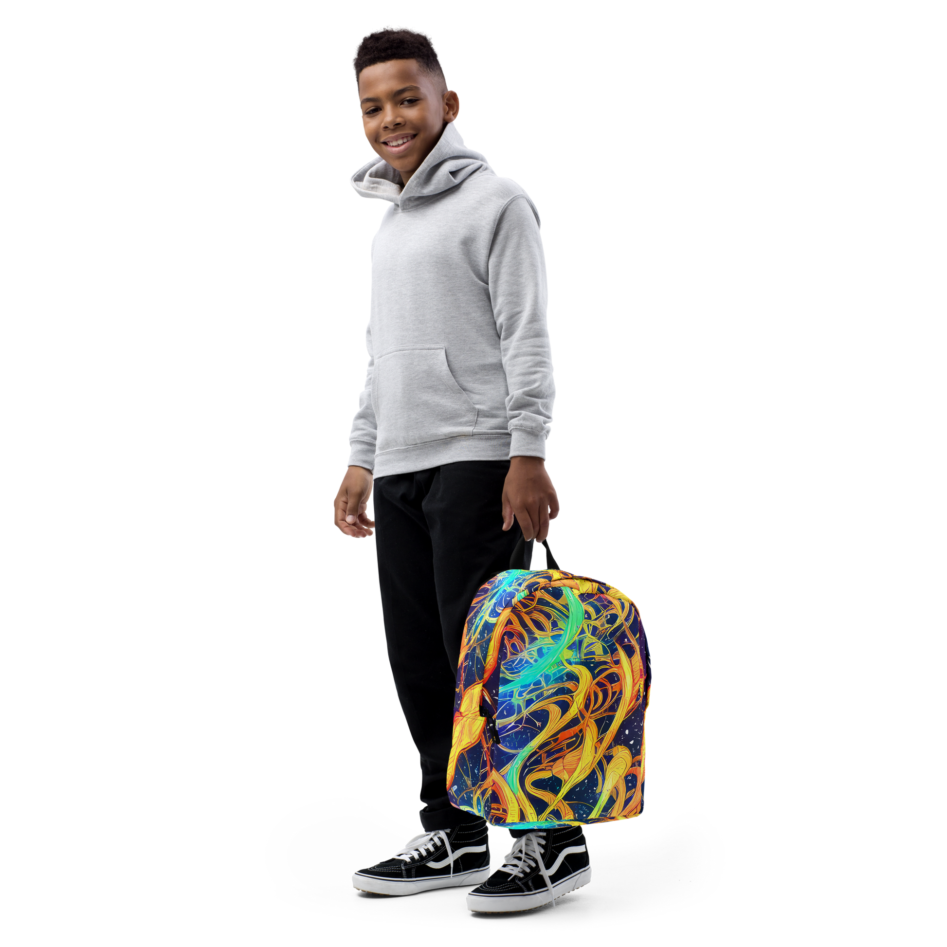 Step into a universe of style with our Minimalist Backpack, featuring an electrifying design that captures the essence of cosmic wonder and artistic flair. Swirling with fiery orange and golden ribbons, electrified by striking blues, and set against an interstellar canvas, this backpack is your ticket to showcasing bold creativity and futuristic adventure. Designed for those who dare to stand out, it's the perfect accessory for comic conventions, art events, or simply turning heads wherever you go.