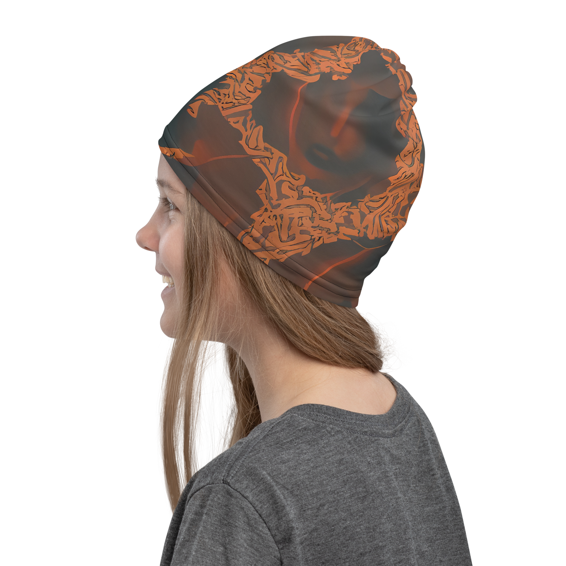 Envelop yourself in the allure of autumn with our multifunctional neck gaiter, adorned with an enigmatic design that blurs the line between the abstract and the figurative. Ethereal faces peek through a complex, lace-like network in a warm symphony of burnt orange and deep maroon, invoking a sense of mystery and artistic flair. Ideal for those who embrace the profound and the surreal, this piece is a statement for any avant-garde event or artistic gathering, enhancing your wardrobe with its unique, AI-generated artistry.