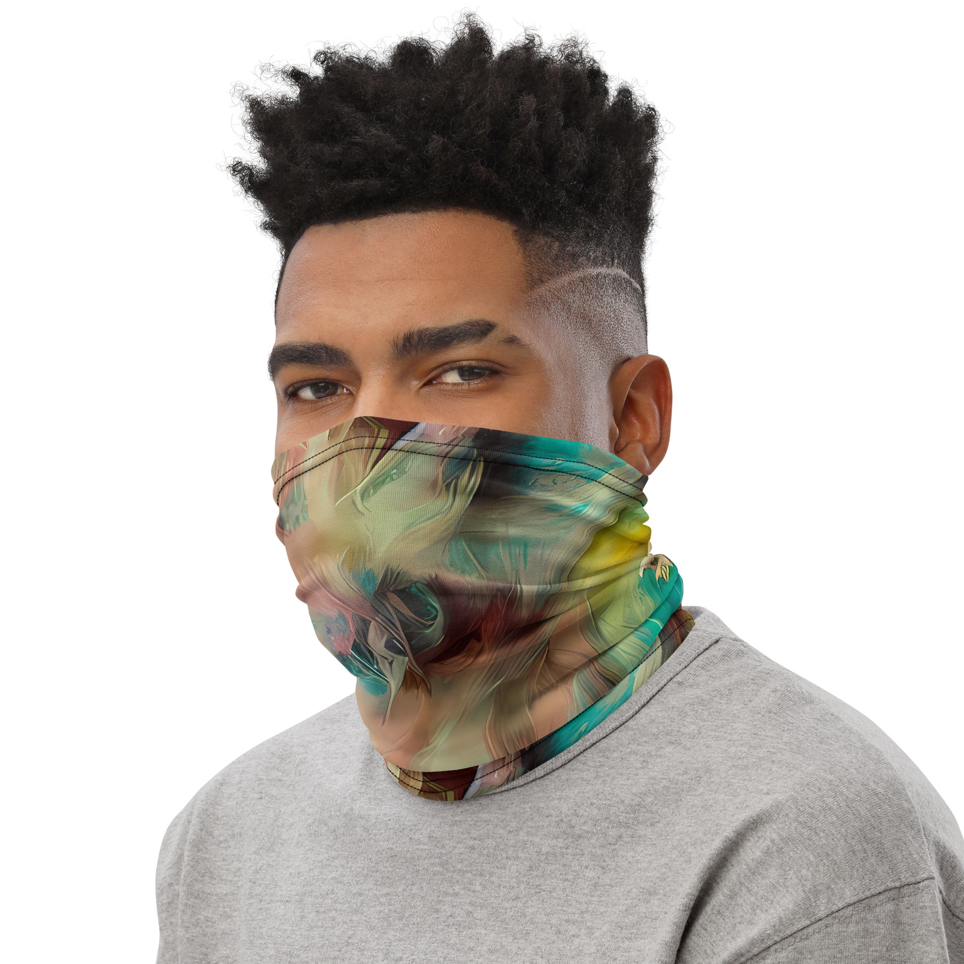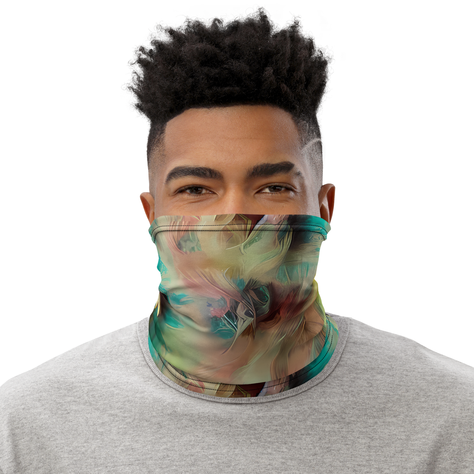 Elevate your accessory collection with this stunning neck gaiter, featuring a mesmerizing blend of ethereal swirls and fluid textures in vibrant hues of teal, coral, and golden yellow. Perfect for artistic gatherings, spring and summer events, and for those with a creative, free-spirited personality, this design evokes a dreamlike, surreal emotion with its flowing, painterly strokes and subtle human forms. This versatile accessory can be used as a face covering, headband, bandana, wristband, or neck warmer, making it an essential addition to your wardrobe. Upgrade your style with this unique, custom AI-art generated design, printed all-over, custom cut, and handmade by our experts!