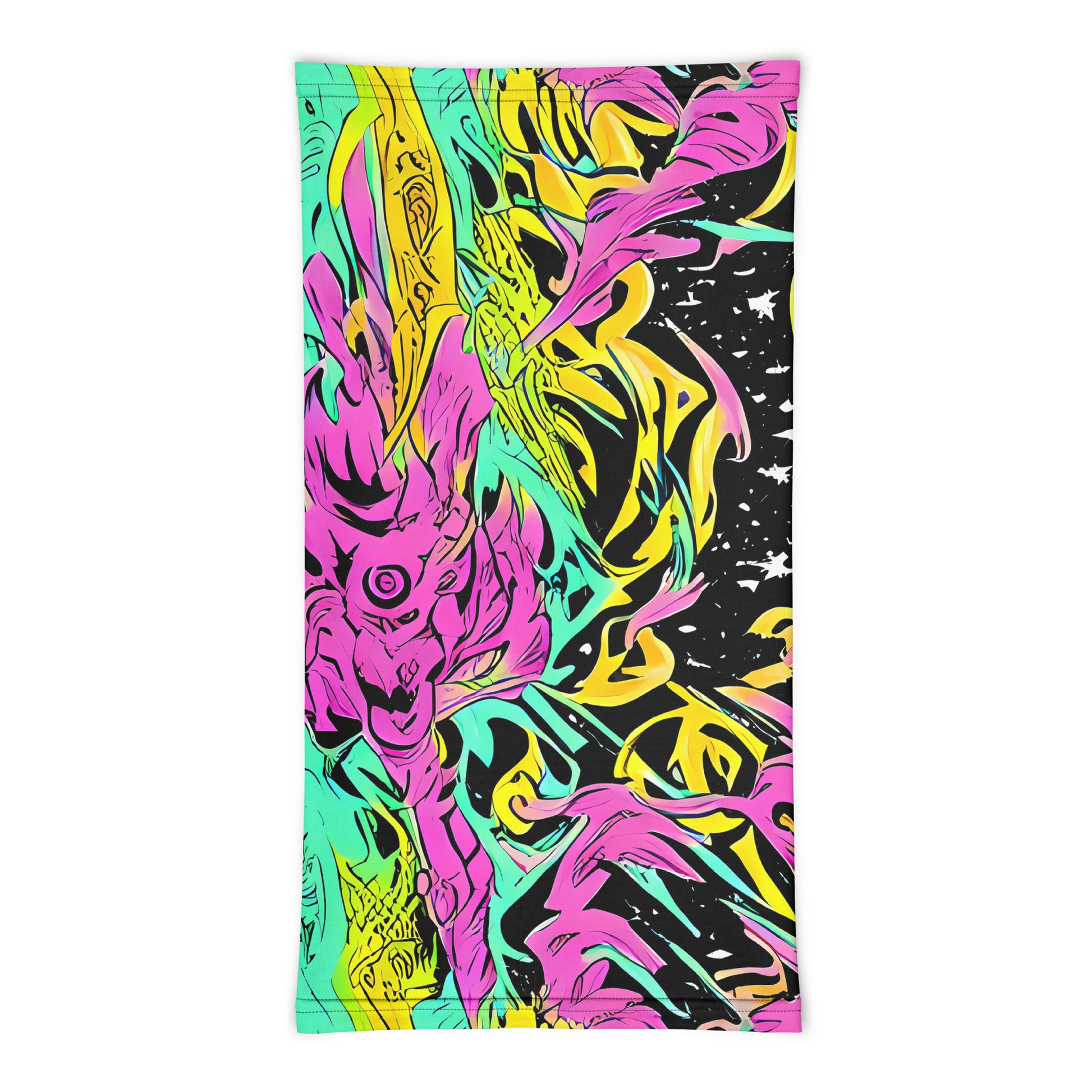 Unleash your inner cosmic rebel with our "Feldstein Frenzy" Neck Gaiter! This vibrant accessory features a breathtaking explosion of neon pink and electric cyan tendrils swirling against a stark black backdrop, sprinkled with white stars, capturing the essence of psychedelic cosmic horror. Perfect for music festivals, avant-garde art events, or those electrifying summer nights, this neck gaiter is not just a fashion statement—it's a declaration of your unrestrained imagination and retro-futuristic flair. Versatile and stylish, it can be worn as a face covering, headband, bandana, wristband, or neck warmer, making it the ultimate accessory for the daring and unconventional.