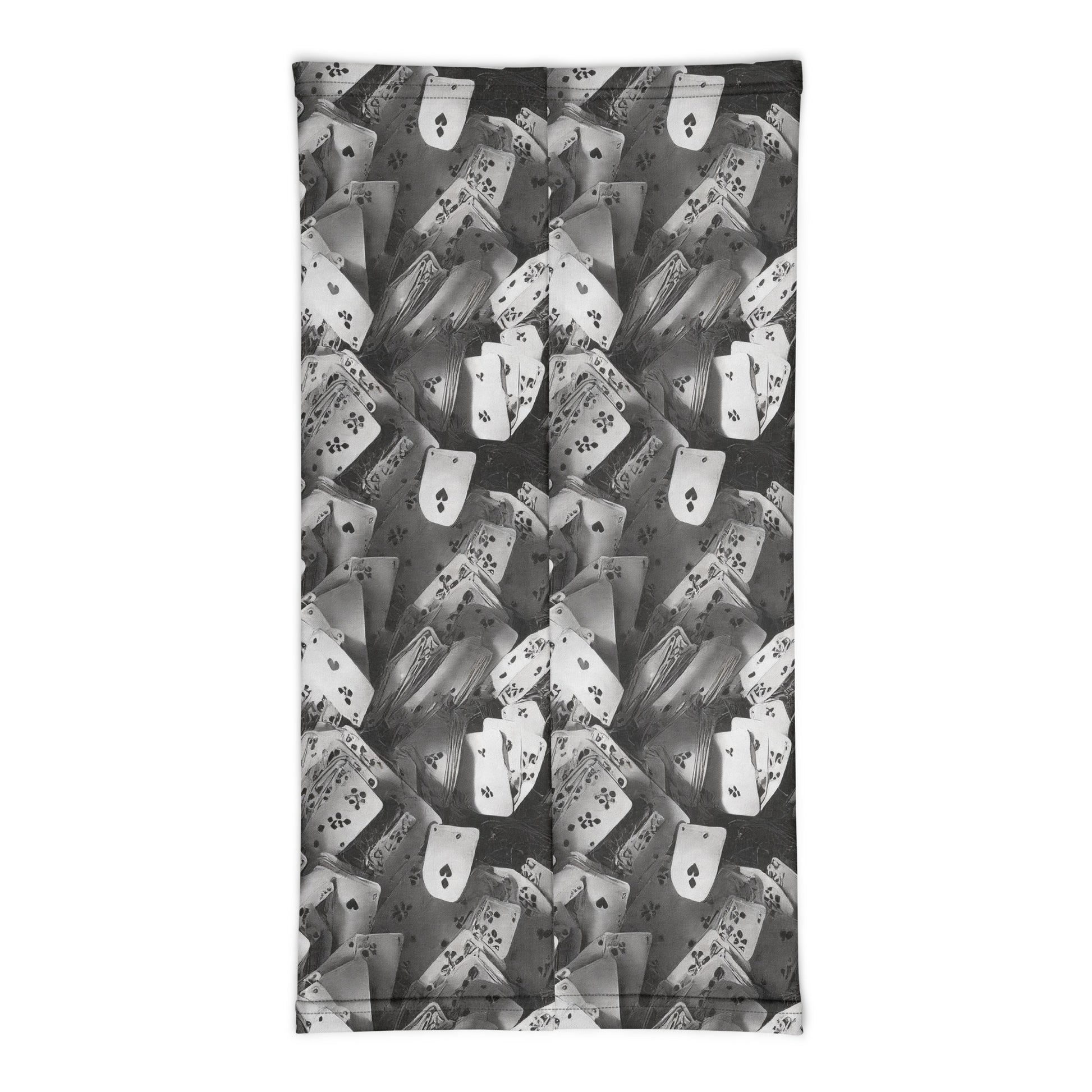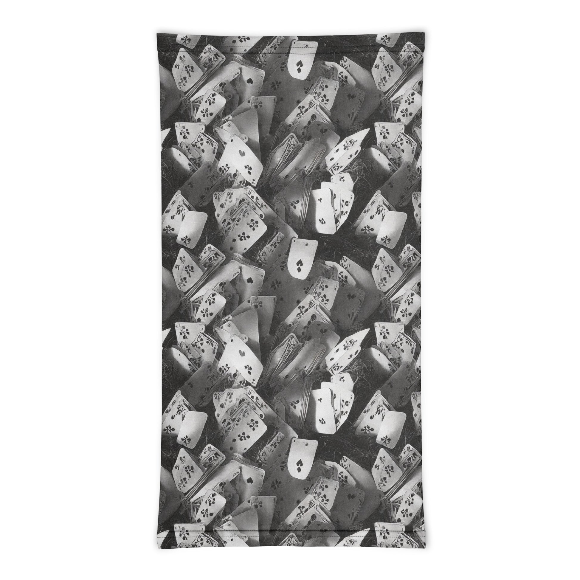 Embrace the whimsical charm of "Fortune’s Folly" with our stunning neck gaiter, a must-have accessory for the adventurous spirit. This captivating piece features a striking monochrome design that intertwines the playful chaos of scattered playing cards with a surreal, dreamlike texture. Perfect for autumnal gatherings or avant-garde events, this versatile neck gaiter can be styled as a face covering, headband, bandana, wristband, or neck warmer. Elevate your accessory game and express your unique style with this one-of-a-kind creation!