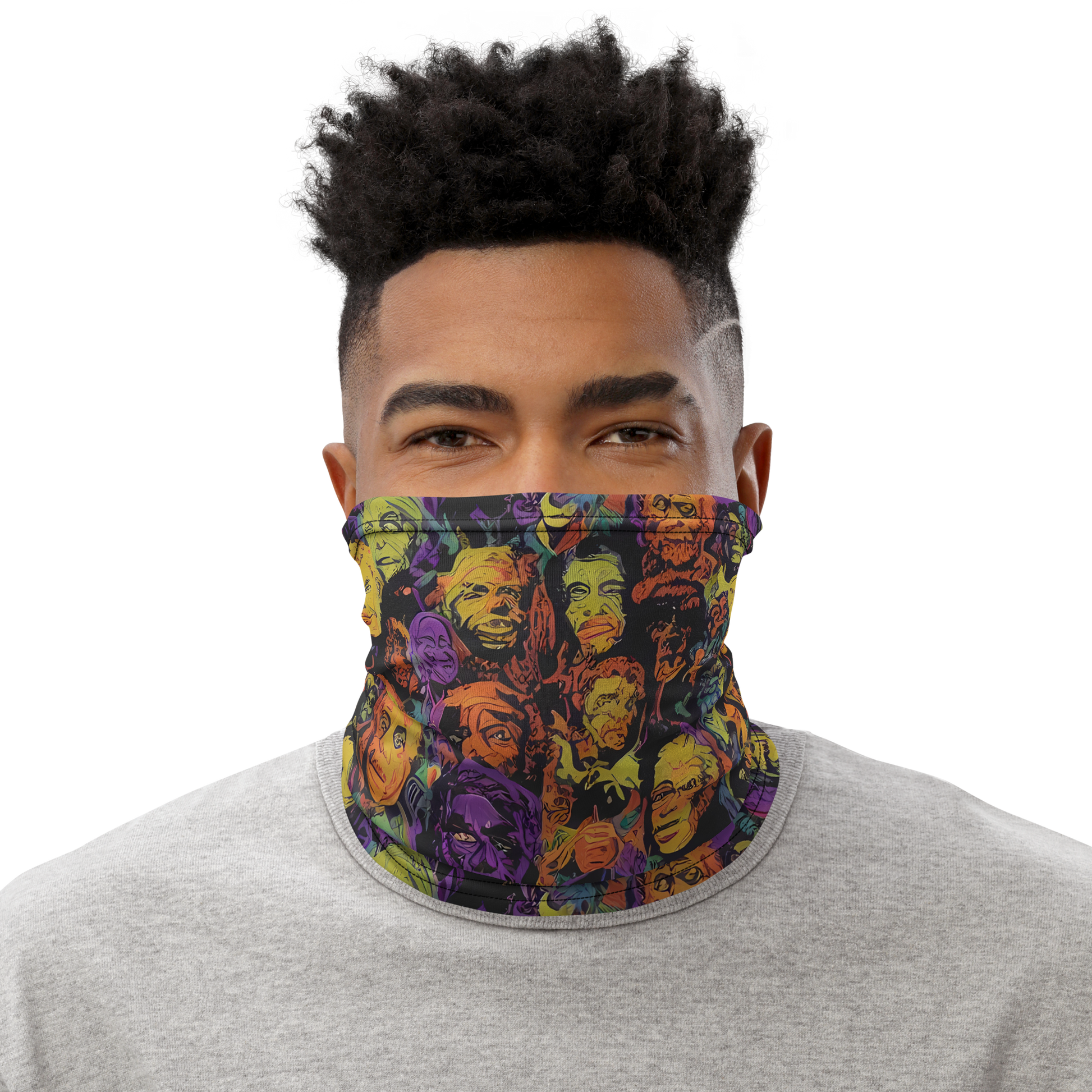 Unleash your inner artist with our "Kaleidoscopic Spirits" Neck Gaiter, a stunning accessory that transforms your look into a vibrant masterpiece. Adorned with swirling faces and abstract shapes in electrifying hues of purple, orange, green, and blue against a deep black backdrop, this gaiter captures the essence of a cosmic carnival. Perfect for artistic gatherings and night events, it’s designed for those who embrace eccentricity and radiate charisma. Versatile and stylish, this neck gaiter can be worn in multiple ways—whether as a face covering, headband, bandana, wristband, or neck warmer, it’s the ultimate accessory to elevate your wardrobe.