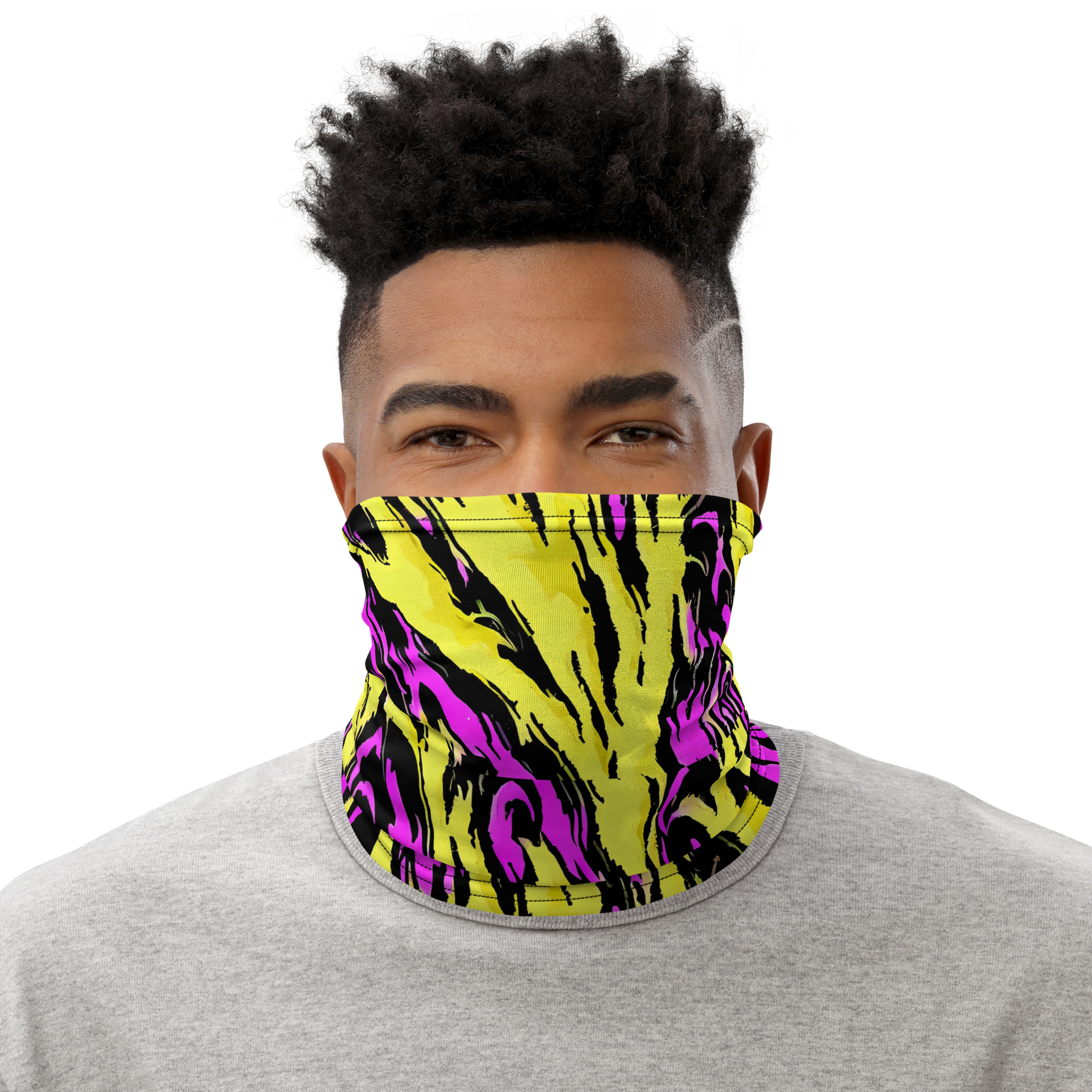 Embrace the wild vibrancy of summer and stand out in any crowd with our electrifying Neck Gaiter. Infused with the essence of the untamed, this accessory boasts an exhilarating design of bold stripes and a neon color palette that captures the essence of a zebra's spirit under a radiant, neon sky. Vivid yellows and striking pinks interlace to create a visually stunning and tactilely engaging texture, perfect for those who love to make a statement at summer festivals, electrifying nightlife, or any setting where the adventurous heart thrives.