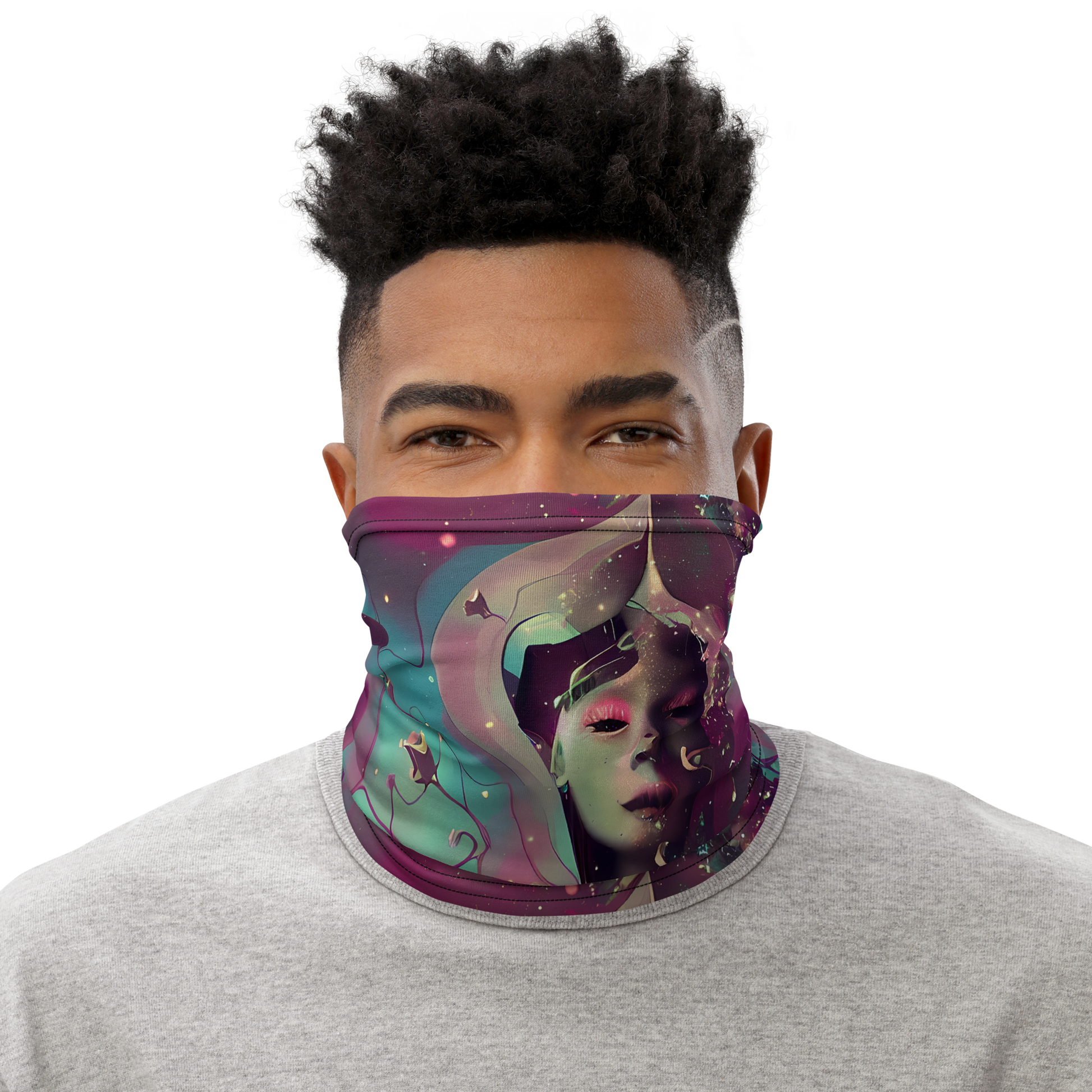 Elevate your style with this versatile neck gaiter, featuring a mesmerizing blend of teal, magenta, and gold hues that evoke the mysterious beauty of deep space. The swirling abstract shapes and delicate textures create a dreamlike, otherworldly vibe, perfect for avant-garde events, festivals, and creative gatherings. Whether you use it as a face covering, headband, bandana, wristband, or neck warmer, this accessory is designed to suit the bold and imaginative personality, especially shining in the vibrant seasons of spring and summer.