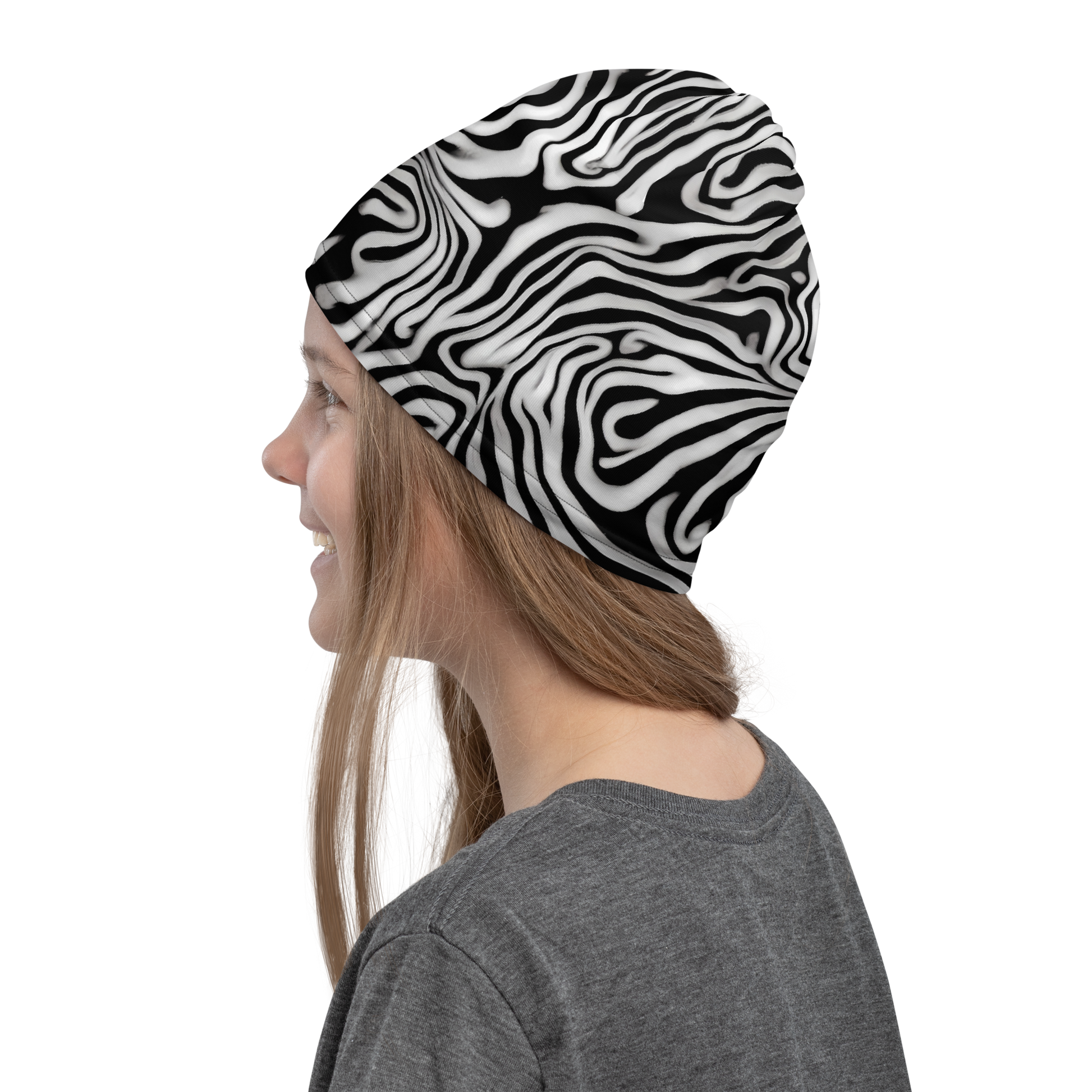 Step into a world of surreal elegance with our Neck Gaiter featuring mesmerizing black and white swirls and waves. This intricate design evokes fluid motion and a hypnotic depth, making it a bold yet sophisticated accessory for artistic gatherings, music festivals, or trendy urban outings. Perfect for spring and autumn, this versatile gaiter can be worn as a face covering, headband, bandana, wristband, or neck warmer. Upgrade your accessory game with this unique, custom AI-art generated design, printed all-over, custom cut, and handmade by our experts!