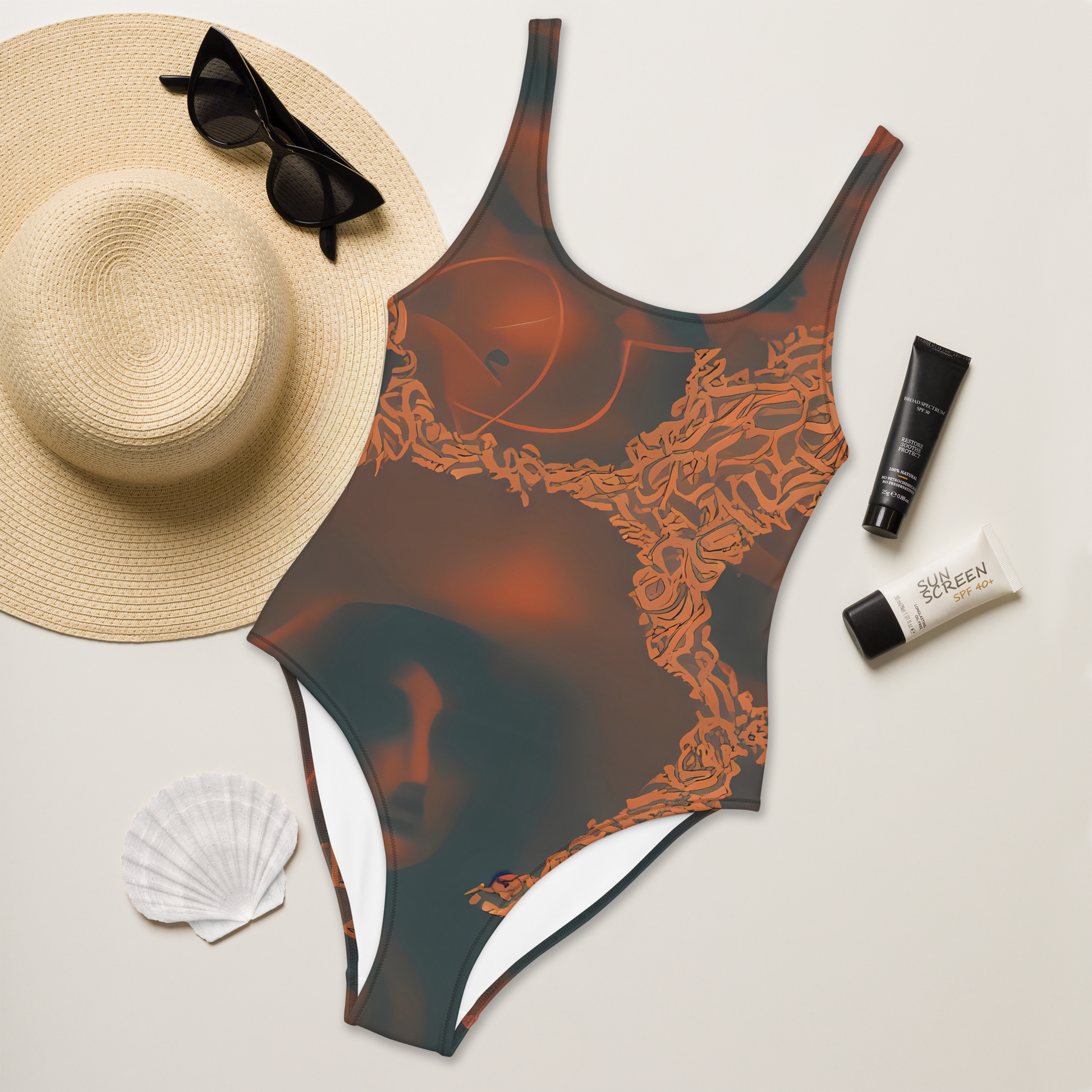Immerse yourself in the art of enigma with our exclusive one-piece swimsuit, adorned with the "Chimeric Visage" pattern. This design weaves a captivating narrative of abstract and figurative artistry, where ethereal faces peek through a labyrinth of delicate, lace-like motifs in a warm, autumn-inspired color scheme. Ideal for those who carry a love for the profound and embrace the surreal, this swimsuit promises to be the emblem of your unique spirit at any avant-garde affair or beachside reverie.