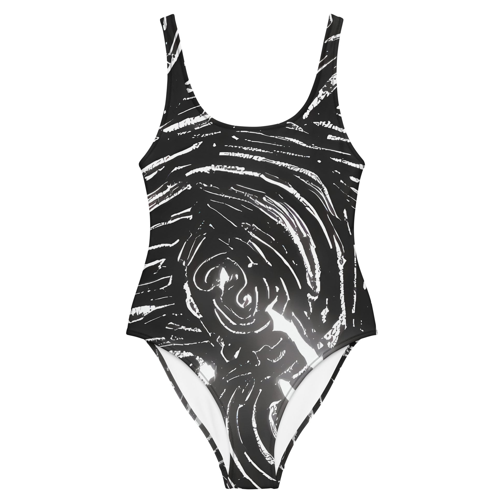 Unleash your inner cosmic goddess with our "Silver Swirl" one-piece swimsuit, where elegance meets avant-garde artistry. Adorned with intricate silver lines that swirl against a deep, dark backdrop, this swimsuit is designed to make you the center of attention, whether you're lounging by the pool or stepping into an evening event. Crafted for the bold and creative spirit, its flattering fit and luxurious fabric ensure you move with confidence and grace. Dive into a world of sophistication and mystery—this is more than swimwear; it's a statement.