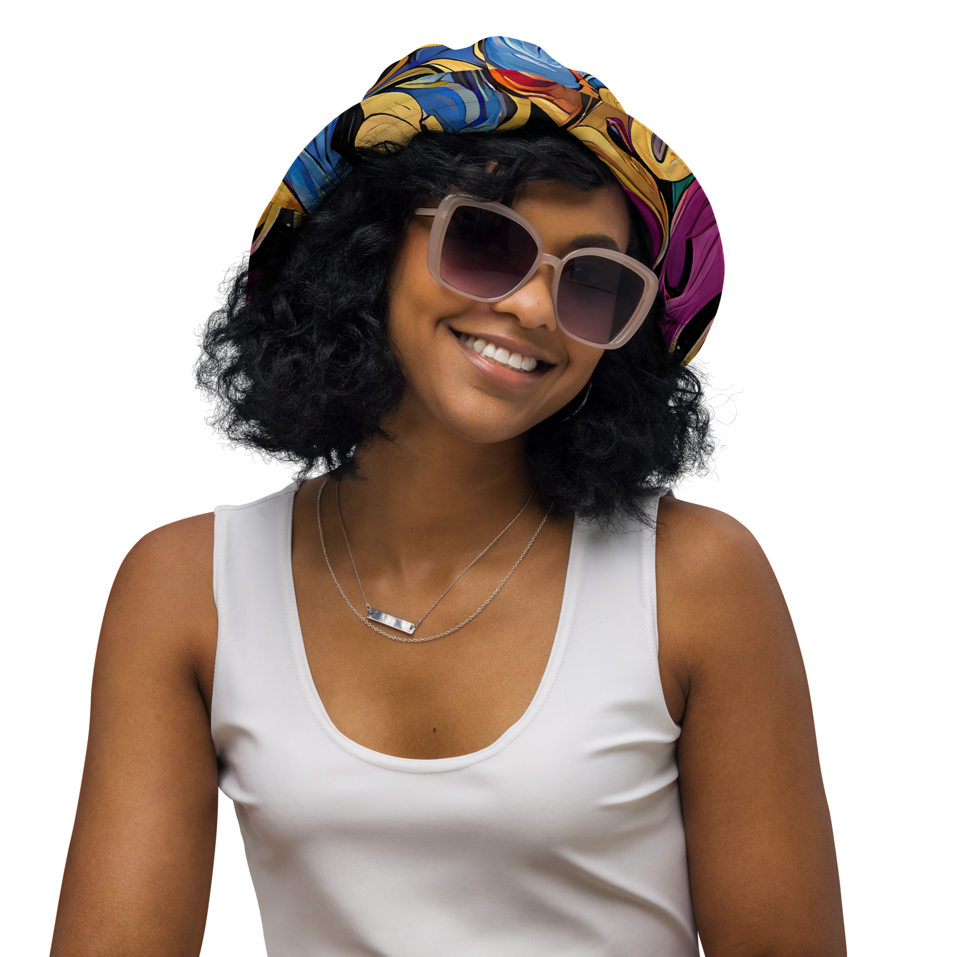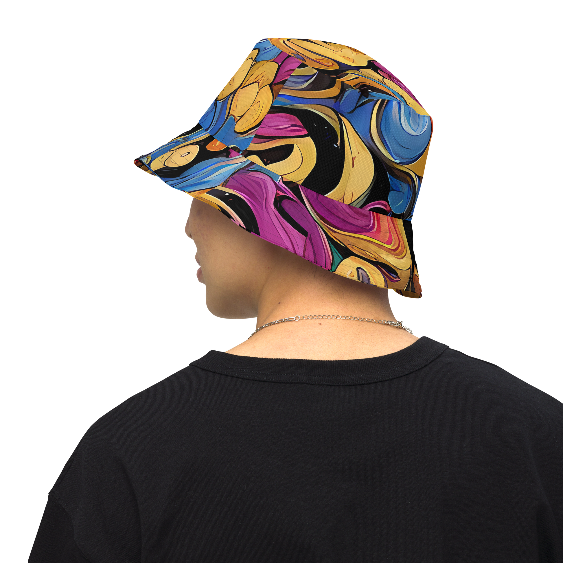 Embrace the artistry of movement and color with our reversible bucket hat, featuring a mesmerizing design that dances with deep blues, purples, and golds. This hat is a tribute to the bold and dramatic flair of baroque art, reimagined with a modern psychedelic twist. Perfect for those looking to make a statement at creative events or to simply stand out from the crowd, this hat offers a versatile and fashionable accessory that complements any season. Flip it to match your mood or outfit, enjoying the comfort of its premium, moisture-wicking fabric that provides both style and function.