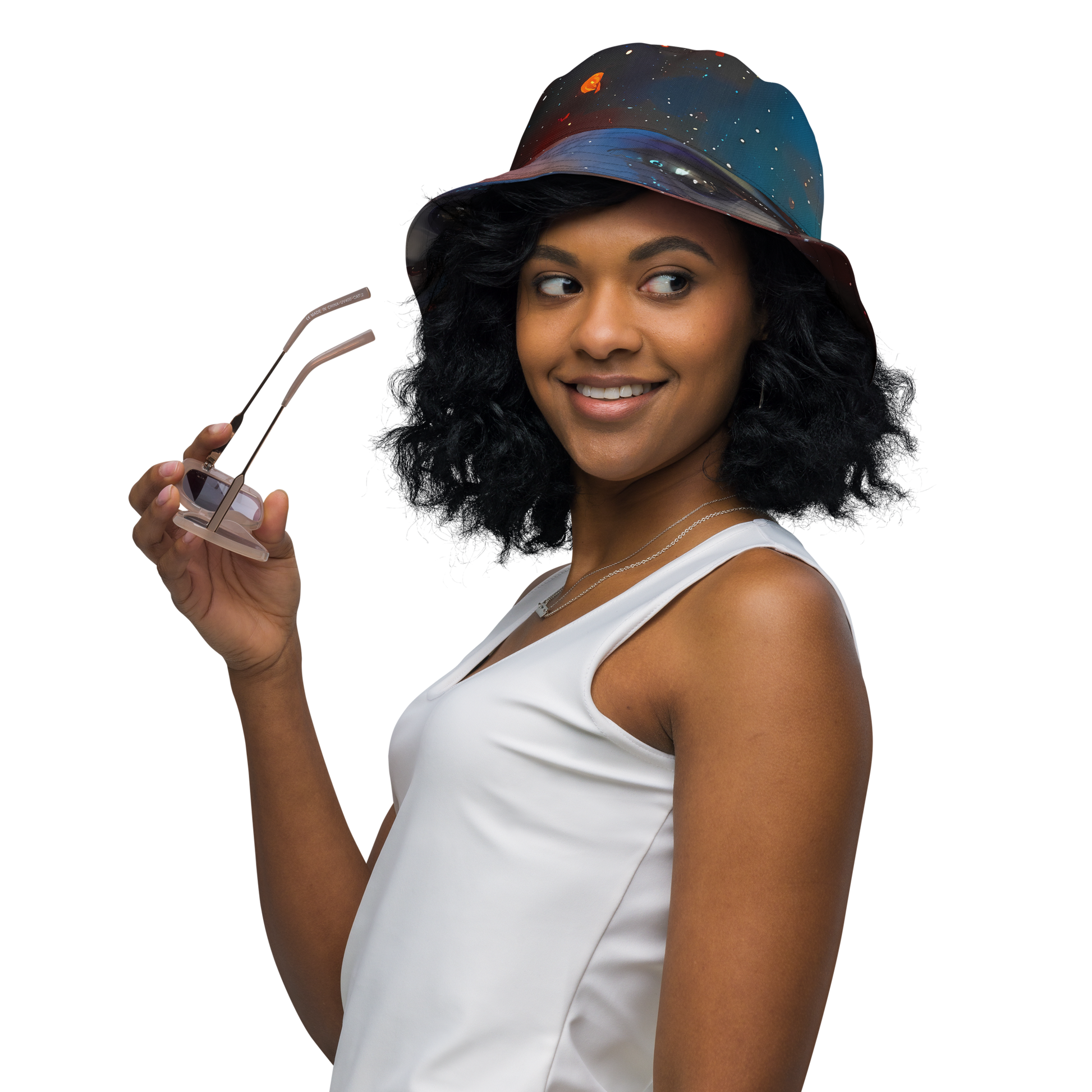 Adorn your crown with the essence of the cosmos and artistic depth in our Reversible Bucket Hat, featuring the mesmerizing "Celestial Vogue" pattern. This hat is a canvas of cosmic allure interwoven with expressive human elements, boasting a vibrant palette of blues, oranges, and reds against the mystique of deep space. The hauntingly detailed eyes and lips that float amidst the stars will make a bold statement at any avant-garde event or artistic gathering. With its reversible design, this hat offers versatility and a touch of individuality that is as unique as you are. Crafted from breathable premium fabric, it promises comfort and style that defies the ordinary.