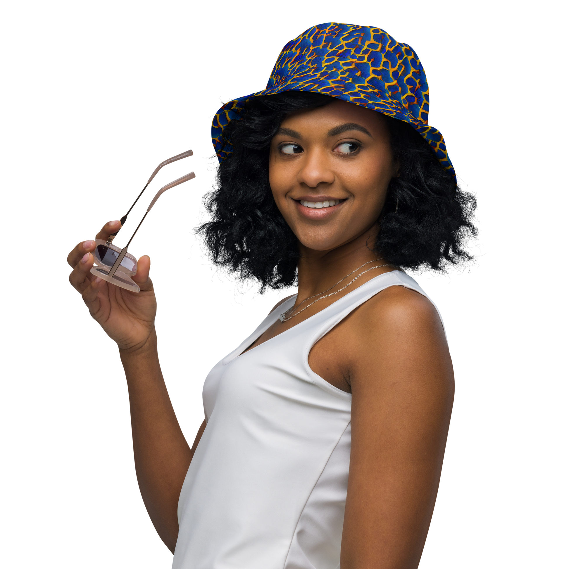 Ignite your style with our reversible bucket hat, featuring a striking design that captures the essence of a volcanic celebration. Adorned with a vivid array of fiery red and orange tones contrasted by deep blue shapes, this hat is a symphony of color that brings the energy of life's most vibrant moments to your wardrobe. Perfect for those who love to stand out, it's an essential accessory for festivals, outdoor adventures, or just adding a touch of daring to your everyday look. Flip it to match your mood or outfit, and enjoy the comfort of its breathable, moisture-wicking fabric no matter where the day takes you.