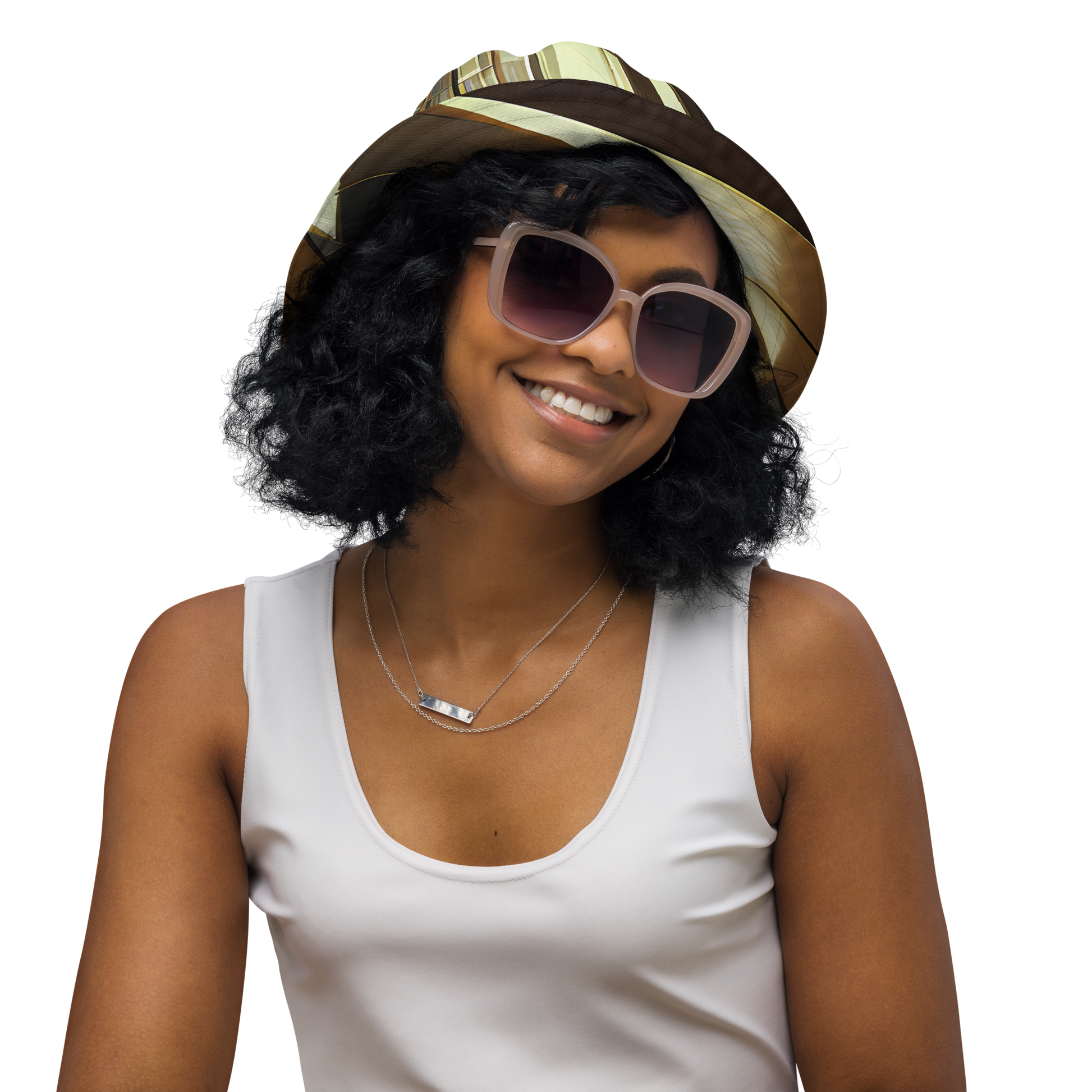 Embrace the timeless allure of our reversible bucket hat, featuring the exquisite "Dutch Perspective" design. This elegant accessory transports you to a serene, golden age with its warm, inviting hues and delicate interplay of light and shadow, reminiscent of classic masterpieces. The hat's rich palette of golden browns, soft creams, and muted colors brings sophistication to your wardrobe, making it perfect for autumnal outings or adding a touch of artistry to any ensemble. Crafted from breathable premium fabric with a linen feel, this hat is not only a statement piece but also a practical addition to your fashion repertoire.