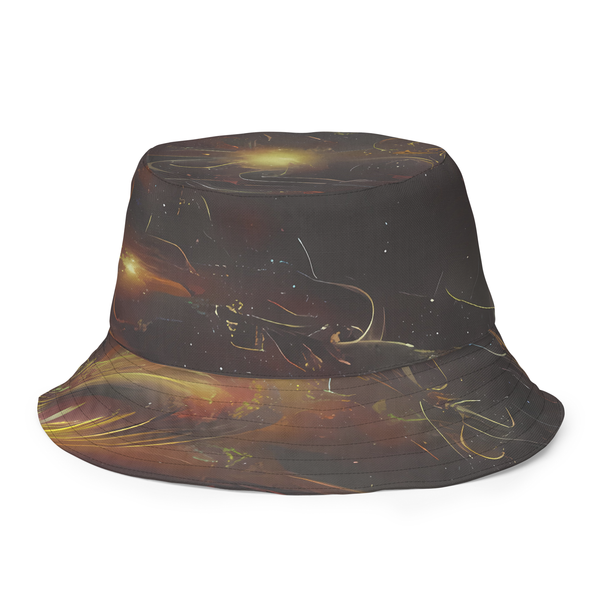 Step into a universe of style with our Reversible Bucket Hat featuring the mesmerizing "Quantum Illusions" pattern. This cosmic-inspired design, with its swirling galaxies and ethereal light, blends deep blues with fiery oranges and golds, offering an otherworldly flair to your wardrobe. Perfect for evening events or art gallery openings, this hat is crafted from premium, breathable fabric, ensuring comfort and style. Whether you're a bold adventurer or an imaginative dreamer, this hat invites you to embrace the mysterious beauty of the universe, making it your ultimate streetwear accessory.