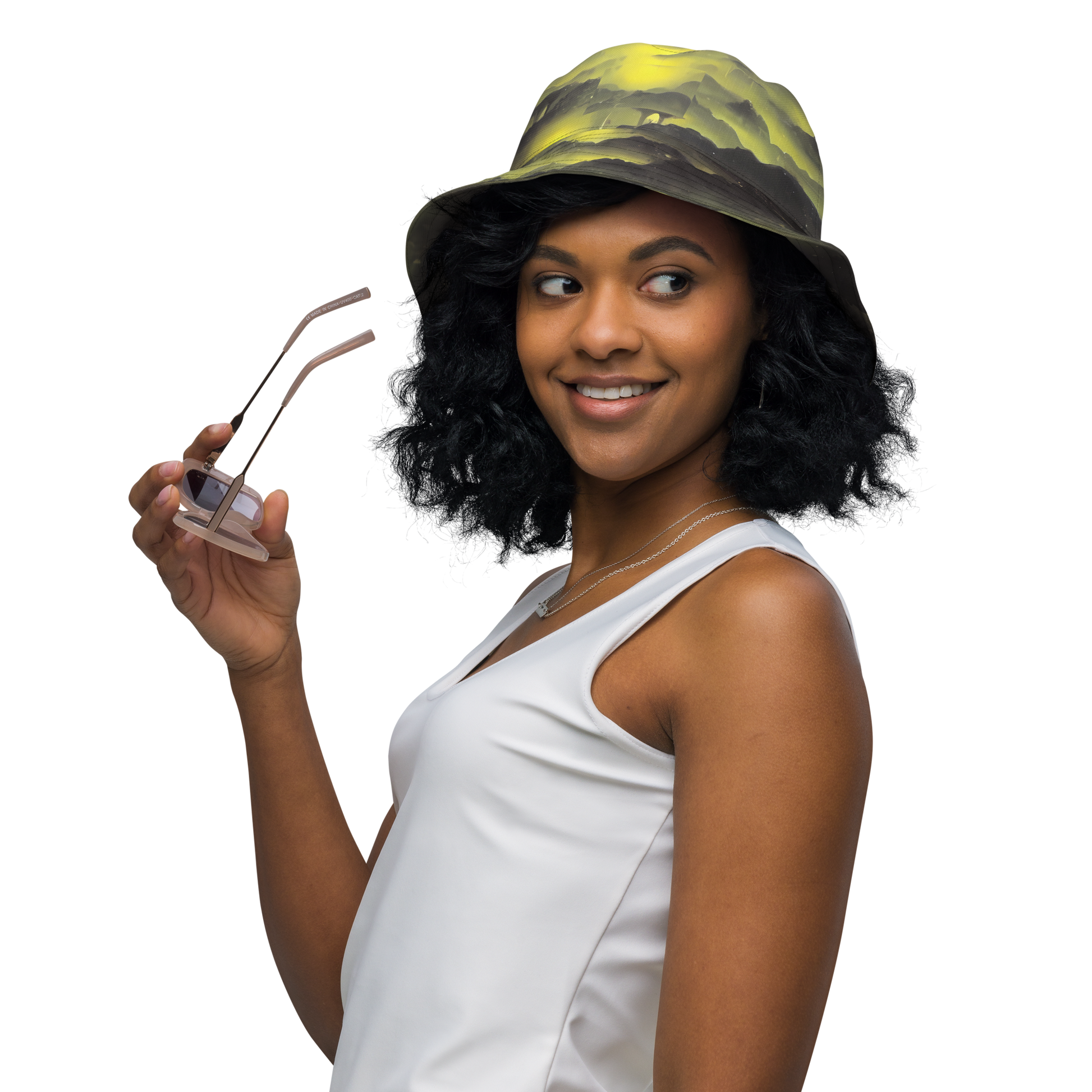 Wrap your head in the enigmatic embrace of our reversible bucket hat, where the "Spectral Isle" pattern dances across the fabric in a symphony of luminous yellows and deep greys. This hat is not just an accessory; it's a wearable piece of art that captures the soul of avant-garde expression and the essence of dreamlike autumn evenings. With its breathable, moisture-wicking fabric, this hat is both a style statement and a comfortable choice for any adventure, whether you're attending a cutting-edge art event or simply enjoying a reflective stroll under the changing leaves.
