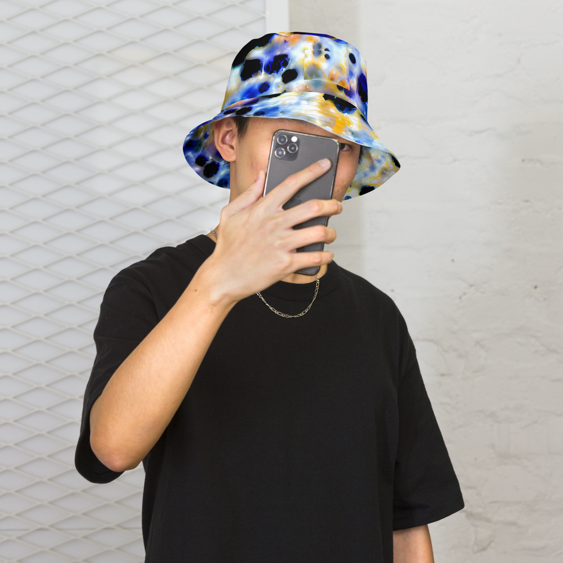 Embrace the fusion of classic art and modern fashion with our reversible bucket hat, featuring a captivating design that dances with deep blues, rich golds, and ethereal whites. The soft-focus effect reminiscent of Impressionist masterpieces brings an artistic touch to your wardrobe, perfect for adding a sophisticated flair to any spring or autumn ensemble. Whether attending a gallery opening or a chic social event, this hat is a statement piece for the creatively inclined. Crafted with care, it promises to be your favorite versatile accessory.