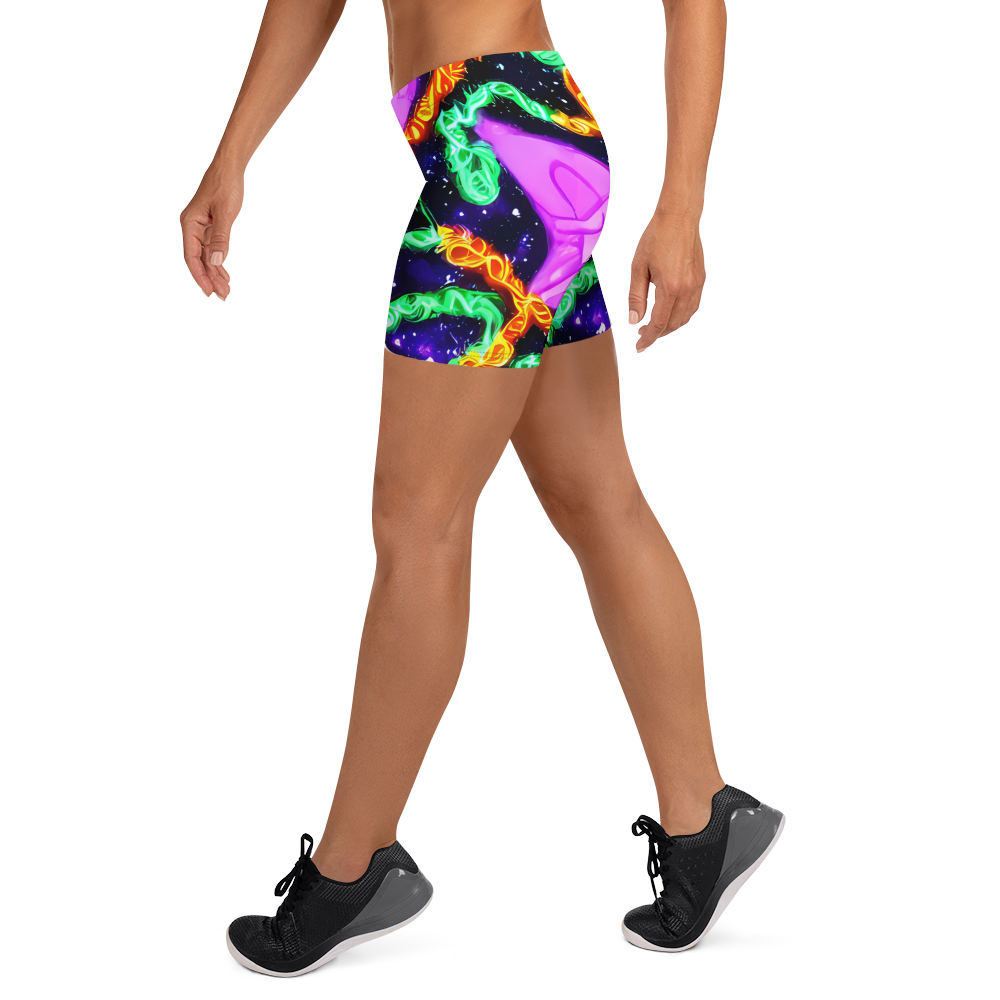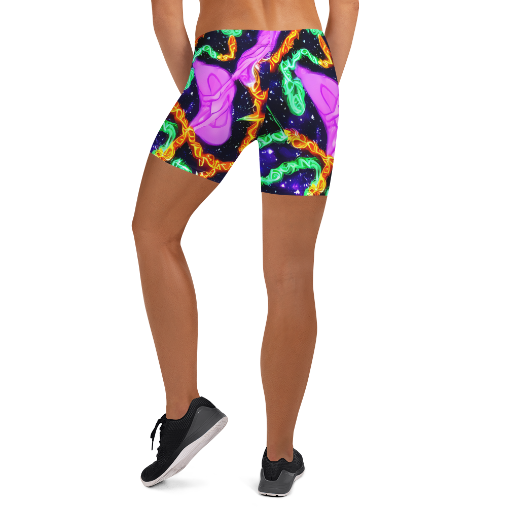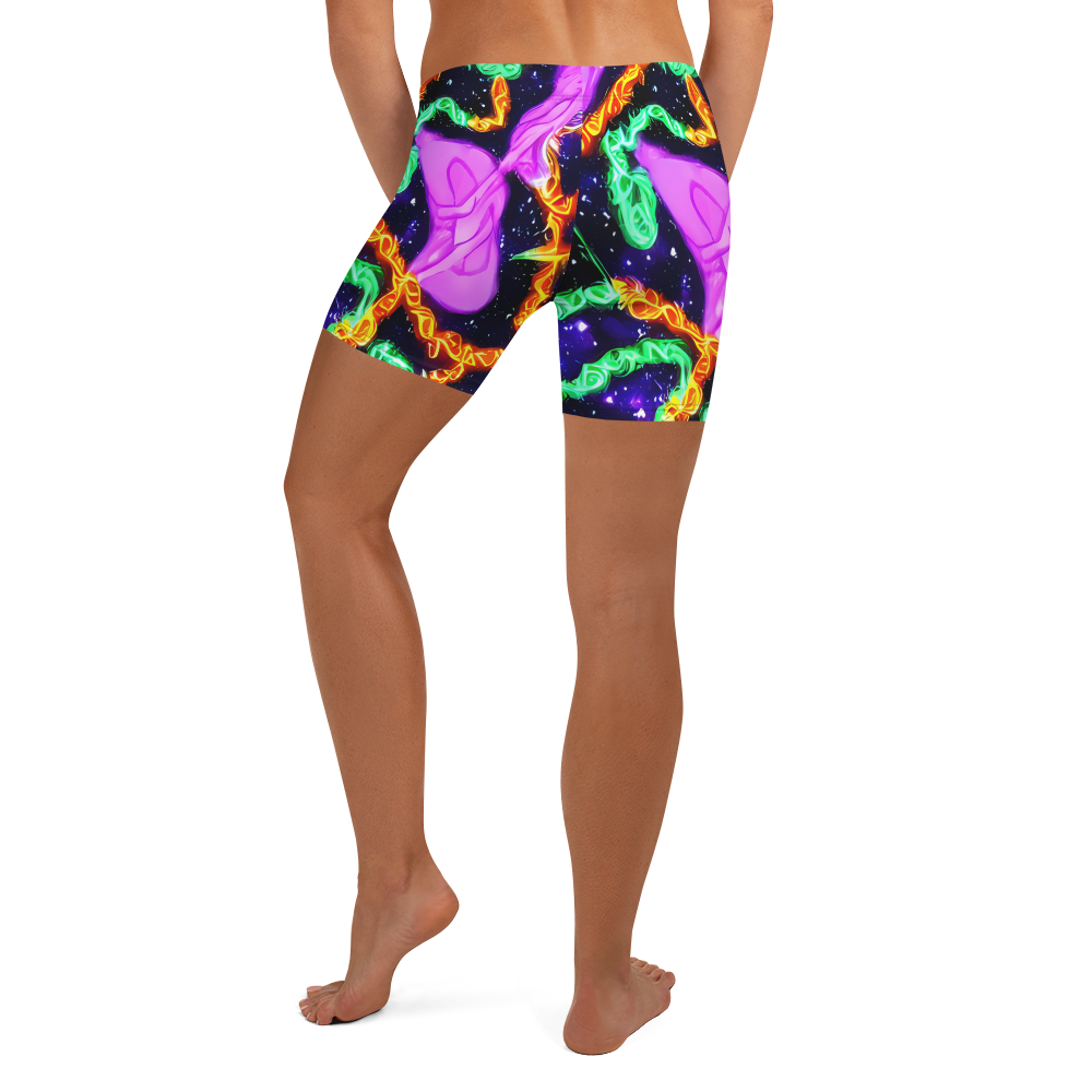 Step into a universe of style with our cosmic-inspired shorts, where a mesmerizing dance of neon greens, purples, and oranges play across a deep blue canvas, speckled with the magic of distant stars. Perfect for festival-goers and dreamers alike, these shorts capture the essence of a starry summer night, wrapping you in a design that's as boundless as your imagination.