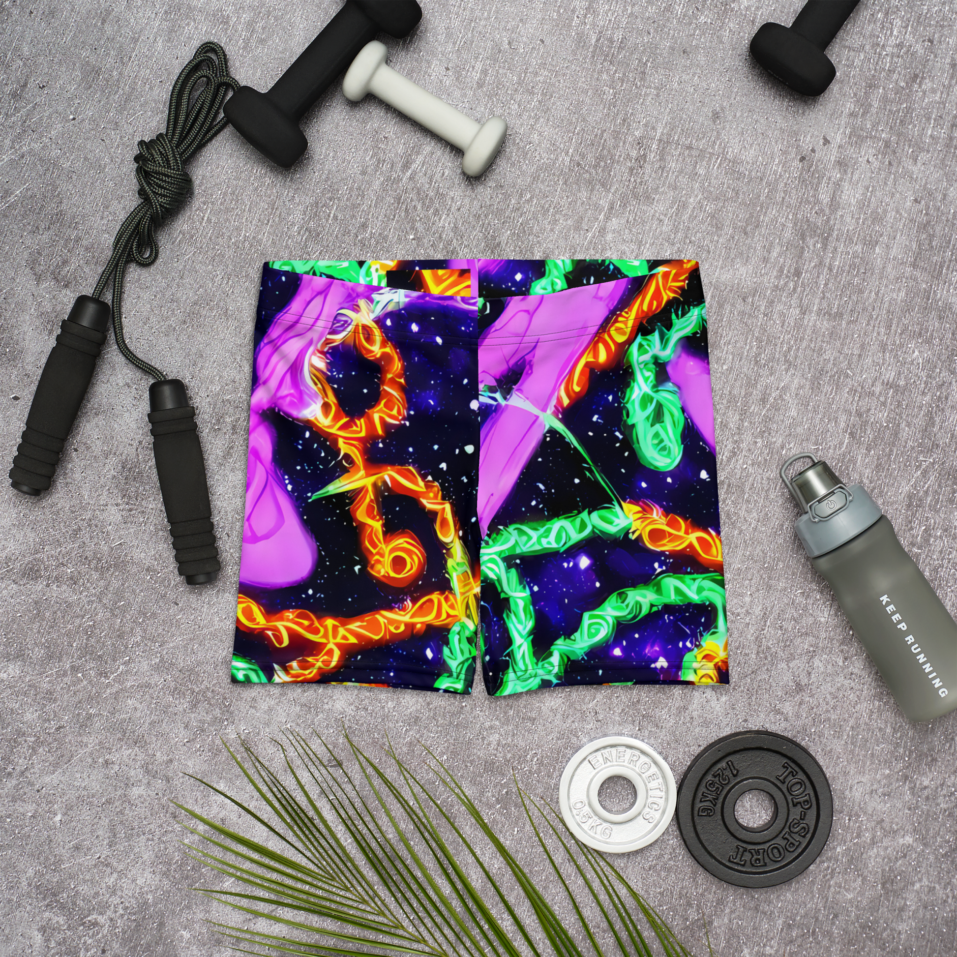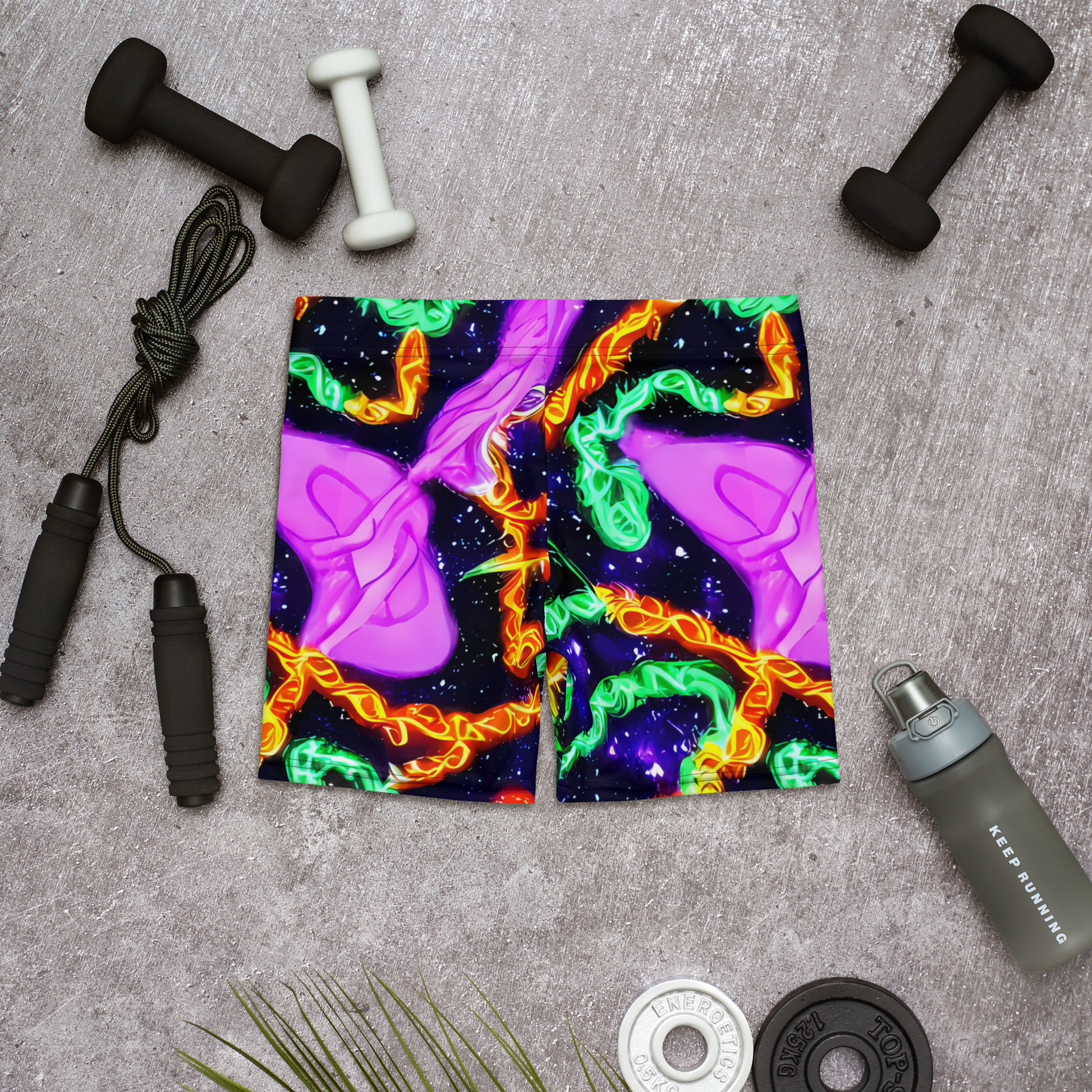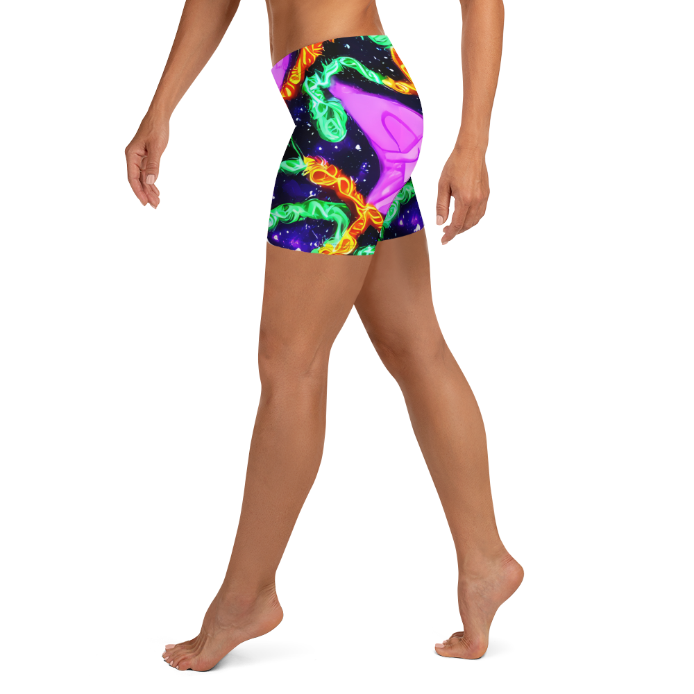 Step into a universe of style with our cosmic-inspired shorts, where a mesmerizing dance of neon greens, purples, and oranges play across a deep blue canvas, speckled with the magic of distant stars. Perfect for festival-goers and dreamers alike, these shorts capture the essence of a starry summer night, wrapping you in a design that's as boundless as your imagination.