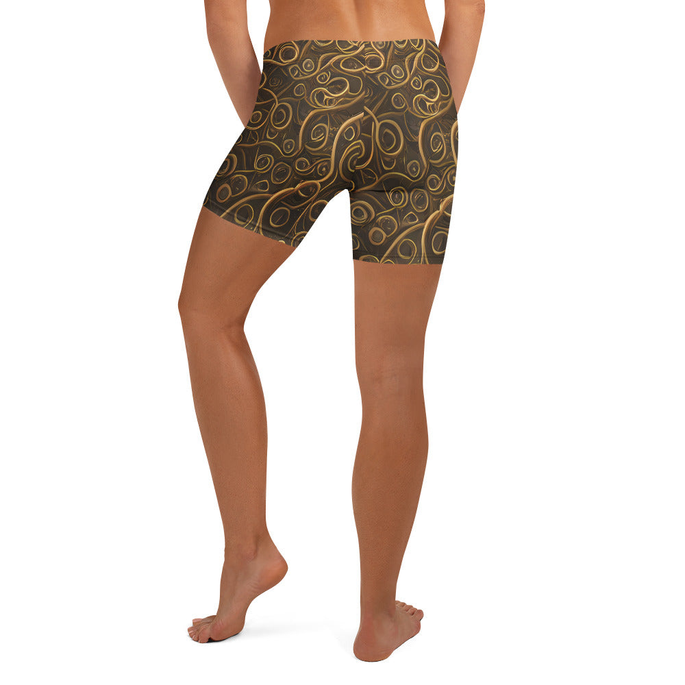 Step into the cosmos with our "Ethereal Coils" shorts, where mesmerizing golden spirals dance against a deep, star-speckled night sky. These shorts are not just a statement piece; they embody a cosmic elegance that transitions seamlessly from intense workouts to sophisticated evening outings. Crafted for those who embrace their unique style, the intricate design evokes a luxurious texture while providing the ultimate comfort and flexibility. Elevate your wardrobe with these shorts that resonate with introspection and bold artistic flair!