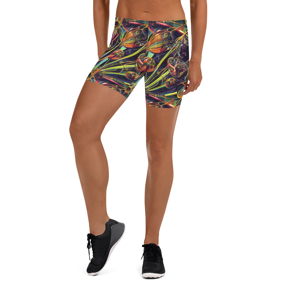 Dive into a universe of color and creativity with our latest shorts, enveloped in a mesmerizing pattern that captures the essence of an interstellar dreamscape. Swirling with emerald greens, electric yellows, and deep purples, these shorts are a canvas of abstract shapes and cosmic visuals that will ignite your imagination and showcase your unique style. Perfect for festival-goers, art lovers, and the fashion-forward who dare to stand out, these shorts are a tribute to the boundless energy of the cosmos and the artistic soul within.
