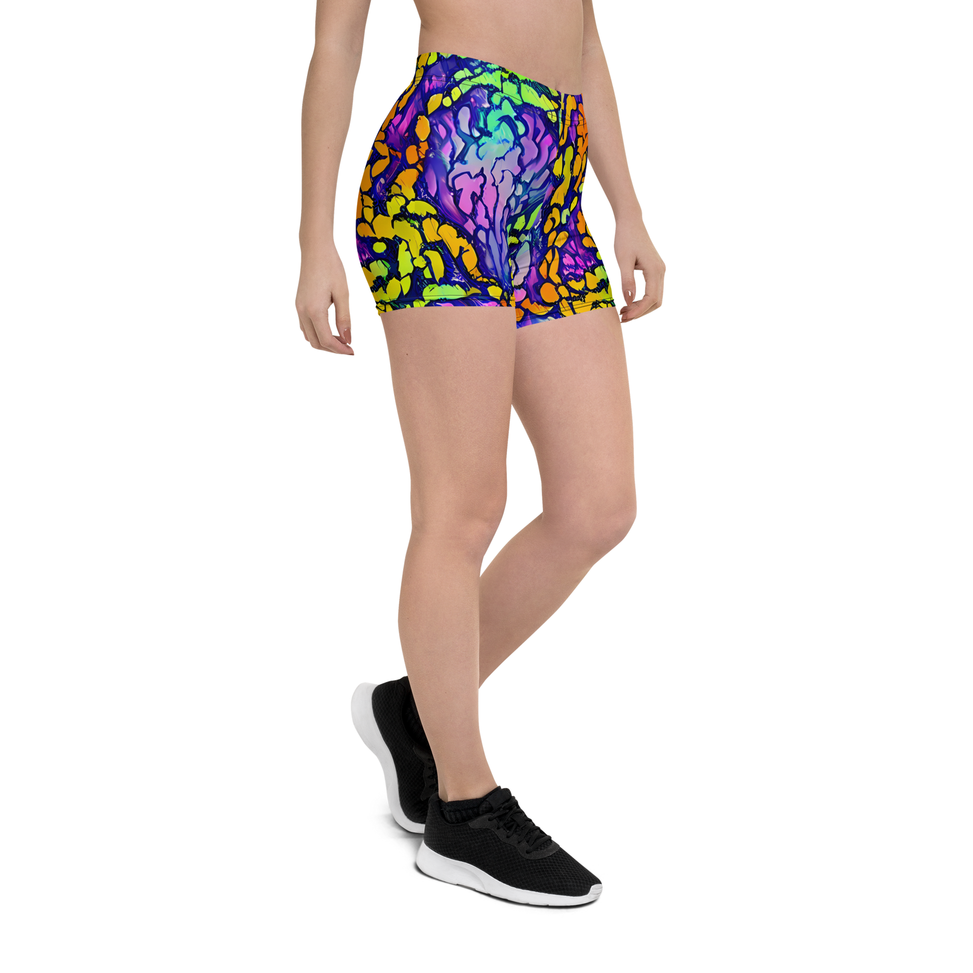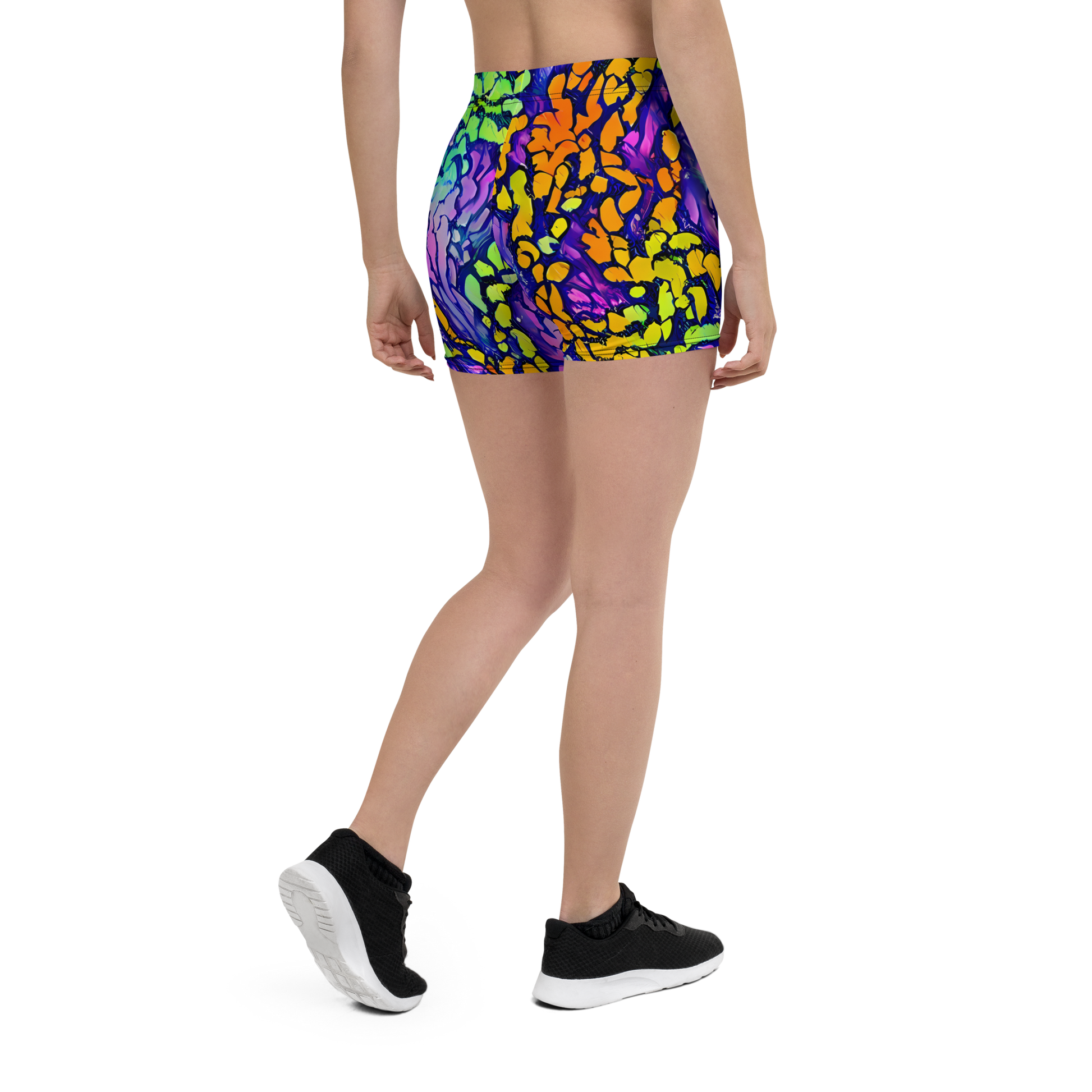 Unleash your inner artist with our AI-designed shorts, featuring the "Surreal Waveforms" pattern by Annie Soudain. Bursting with neon green, electric blue, fiery orange, and deep purple, these shorts embody the vivid beauty of nature's textures. Perfect for making a bold statement at summer festivals or casual gatherings, they capture the essence of whimsy and creativity. Constructed for both style and performance, these shorts are your go-to for any adventure!