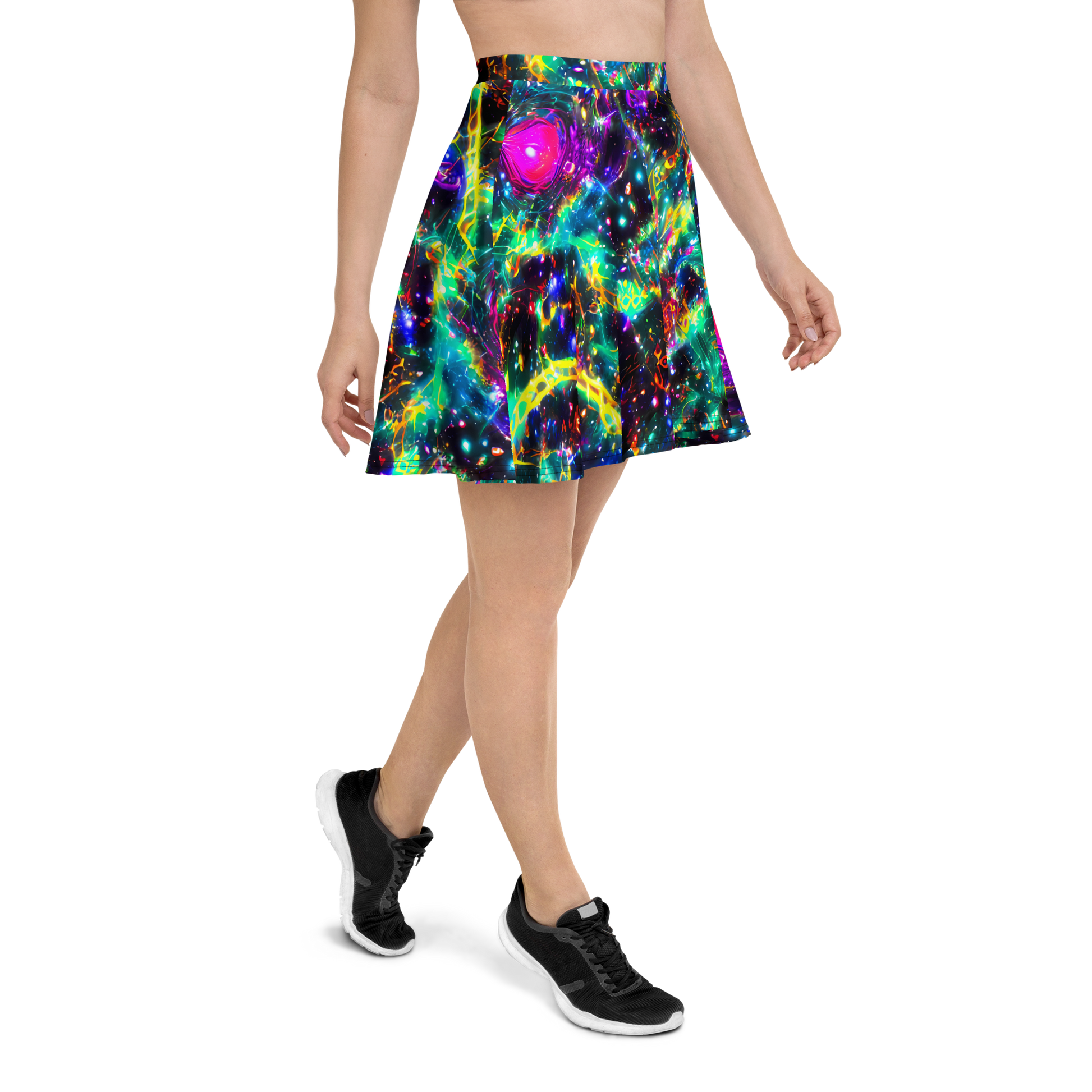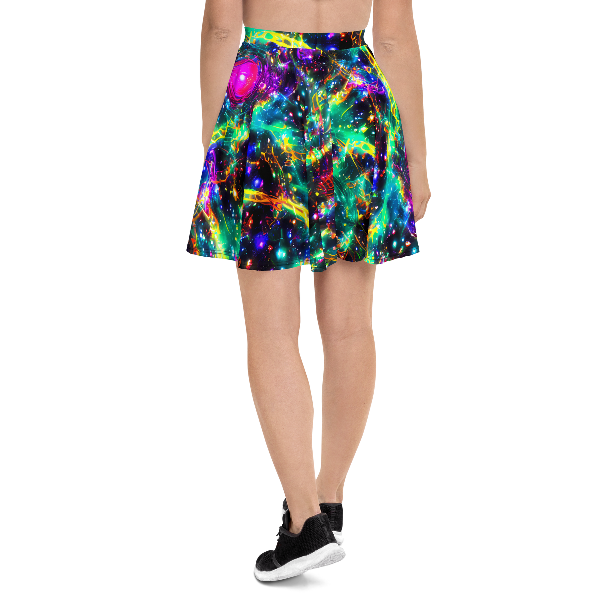 Unleash your cosmic creativity with our "Blythe Nebula" skater skirt, where vibrant neon greens, electric blues, and radiant pinks swirl together in a stunning display of artistry. This unique piece is designed for those who dare to stand out, making it the perfect companion for music festivals, art events, or any occasion that celebrates individuality. With its flattering flared cut and supreme comfort, you'll not only look fabulous but feel fabulous too—twirl into style and let your personality shine!