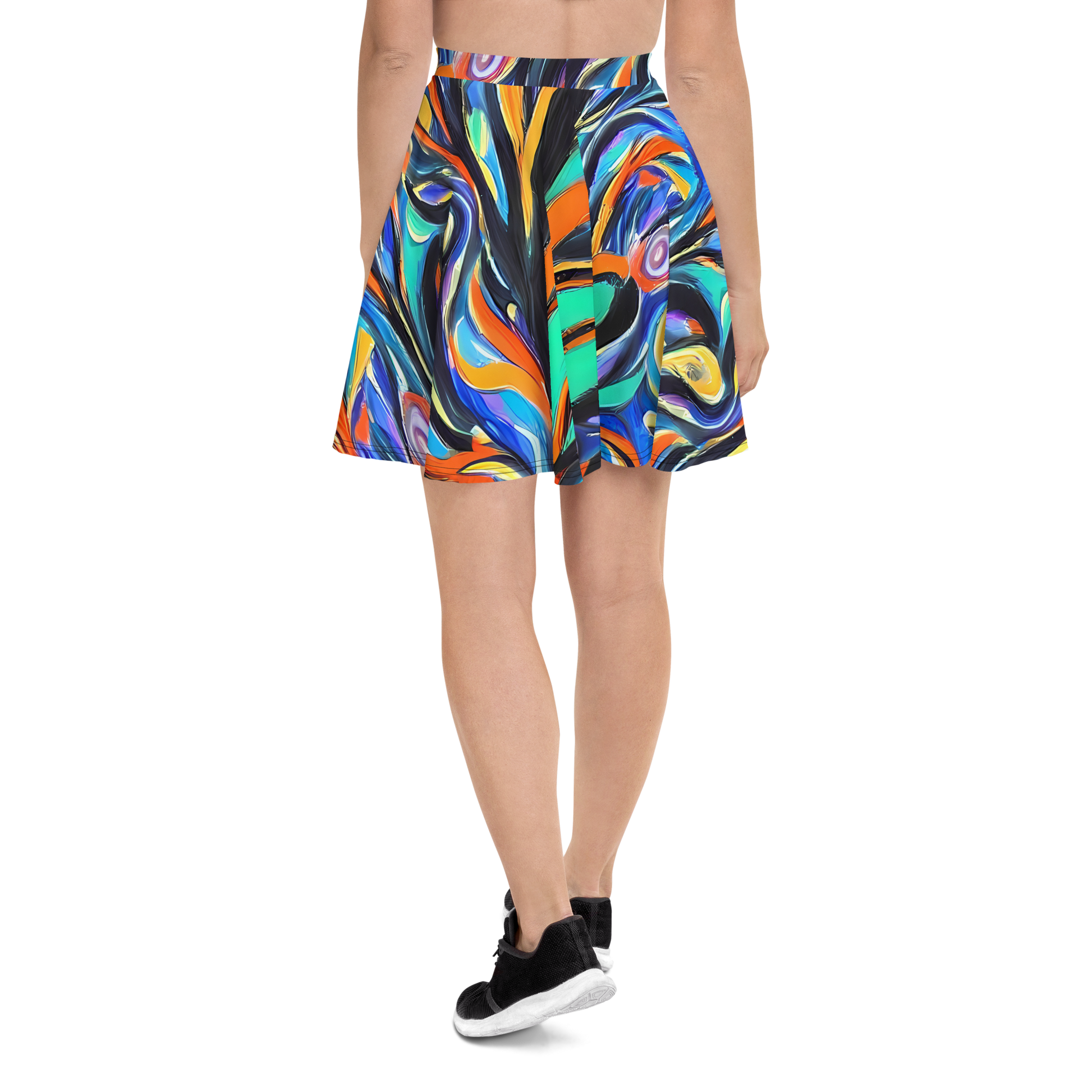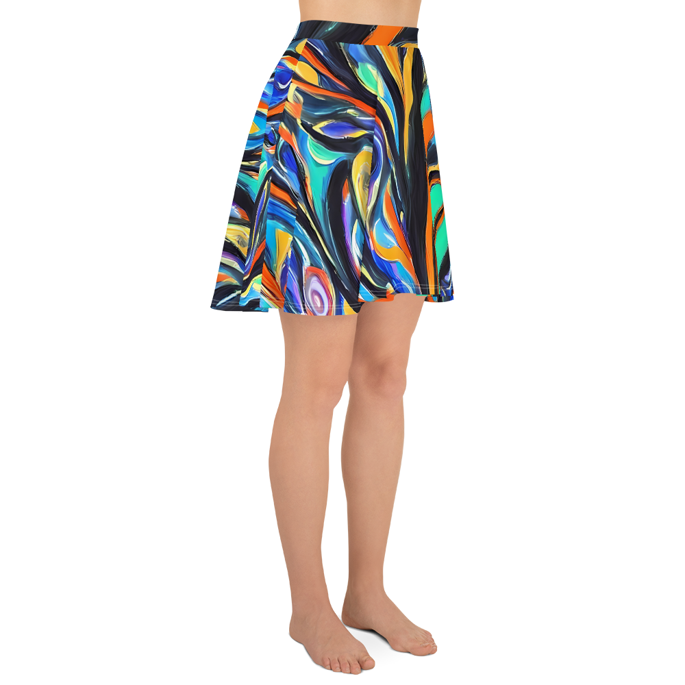 Embrace the essence of artistic expression with our skater skirt, featuring the "Carr's Whirl" pattern. This skirt captures the wild beauty of nature's palette, swirling with vibrant blues, oranges, and greens that dance around you with every move. The design's fluid shapes and energetic lines offer a sense of freedom and artistic flair, perfect for those who celebrate originality and self-expression. Make an unforgettable impression at art events, during the autumnal season, or at any gathering where your unique style deserves the spotlight.