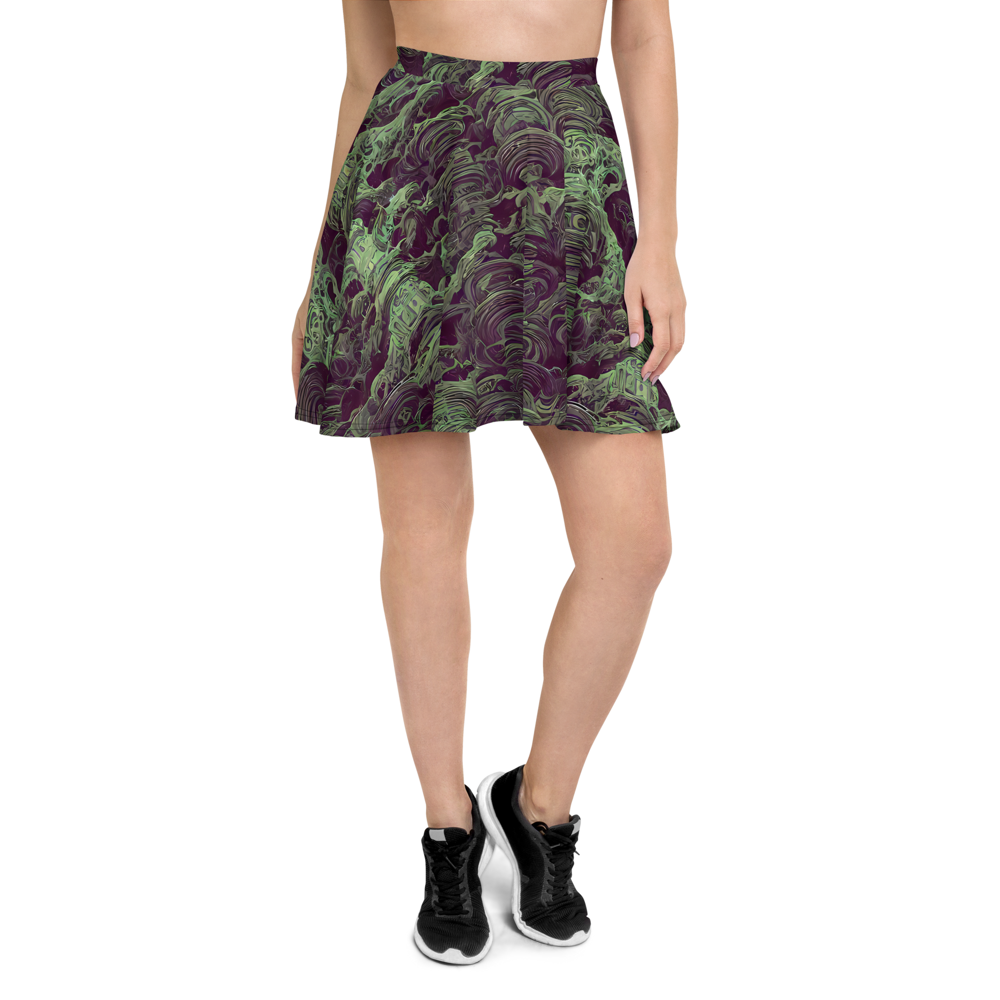 Step into a world of artistry and allure with our exclusive skater skirt, featuring the captivating "Knab Whorls" pattern. This enchanting design, inspired by the mysterious and romantic ruins depicted in Ferdinand Knab's artworks, weaves deep greens and muted purples into a mesmerizing tapestry of swirling elegance. Perfect for gallery openings or creative soirées, this skirt effortlessly combines sophistication with comfort, making it an essential addition to your autumn wardrobe. Embrace your unique style and let every twirl tell a story.