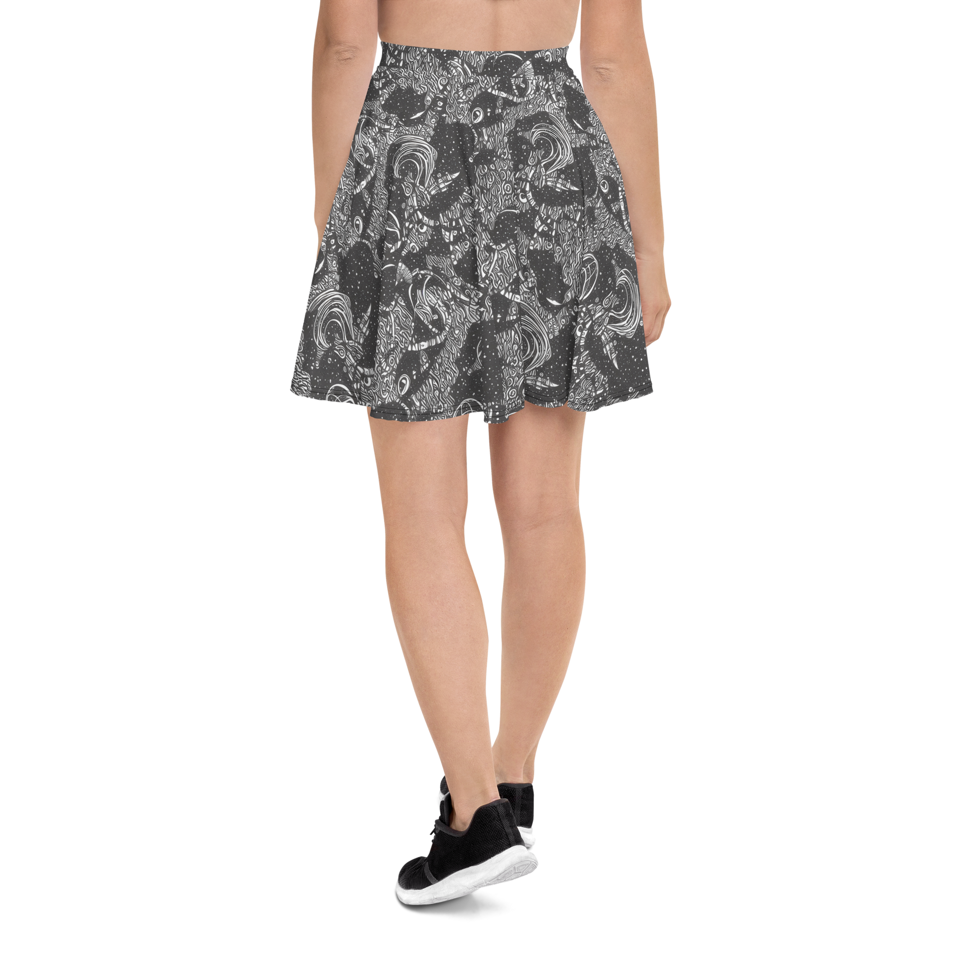 Step into a world of cosmic elegance with our "Shadow Reverie" skater skirt, where swirling monochrome patterns create an enchanting dreamscape that captivates and inspires. This unique design not only showcases your bold personality but also enhances your silhouette with its flattering flared cut. Perfect for avant-garde gatherings or art-inspired events, this skirt offers supreme comfort and style, making it an essential addition to your wardrobe for the cooler seasons.