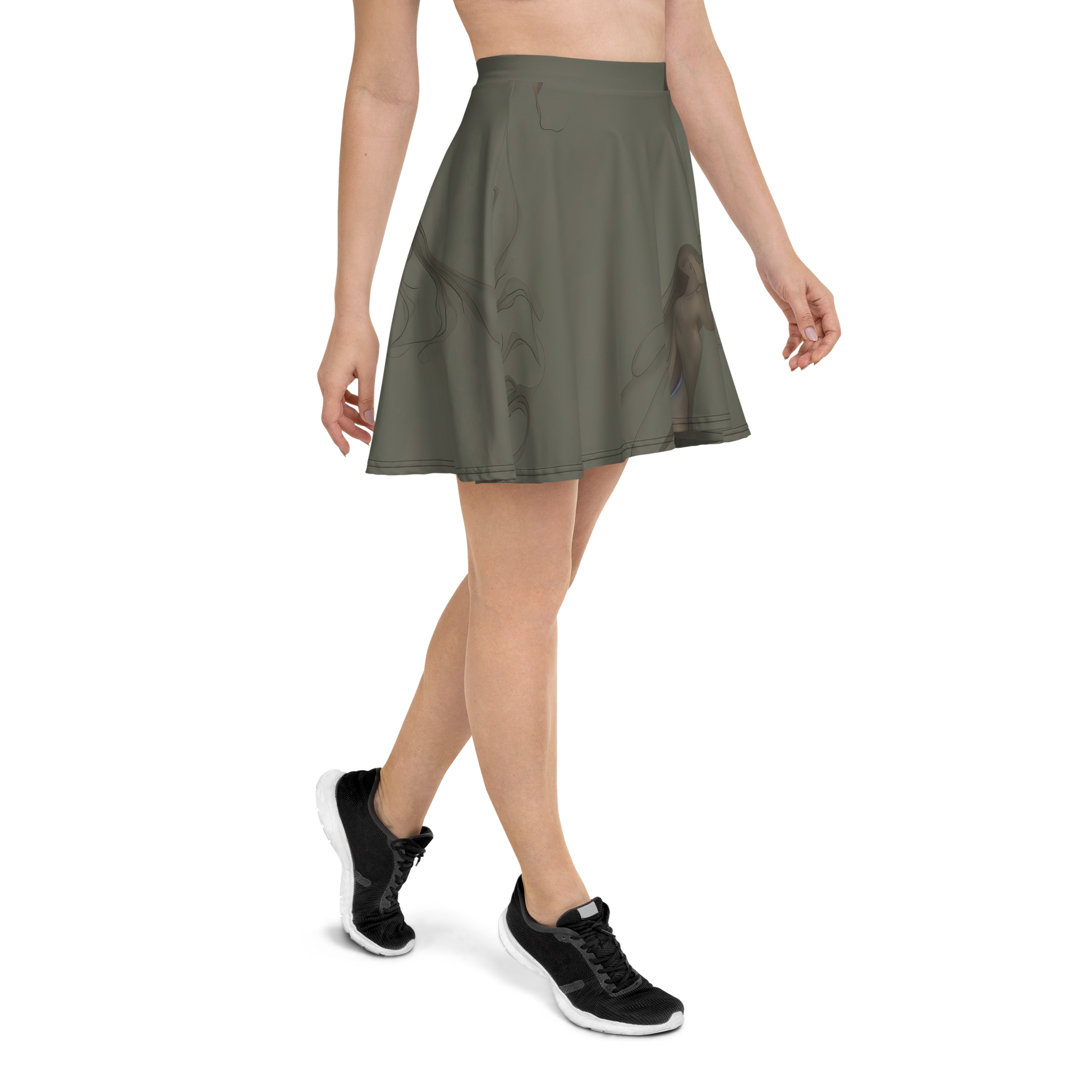 Embrace a masterpiece of motion and emotion with our exclusive skater skirt, featuring the mesmerizing "Valsecchi's Veil" pattern. The dusky olive tones dance with ethereal shapes across the fabric, echoing the dynamic essence of Olivier Valsecchi's photography. This skirt is a canvas of shadow and light, offering a textured depth that captivates the eye. Perfect for those who dress to express, it's an artful addition to any autumn event or avant-garde ensemble.