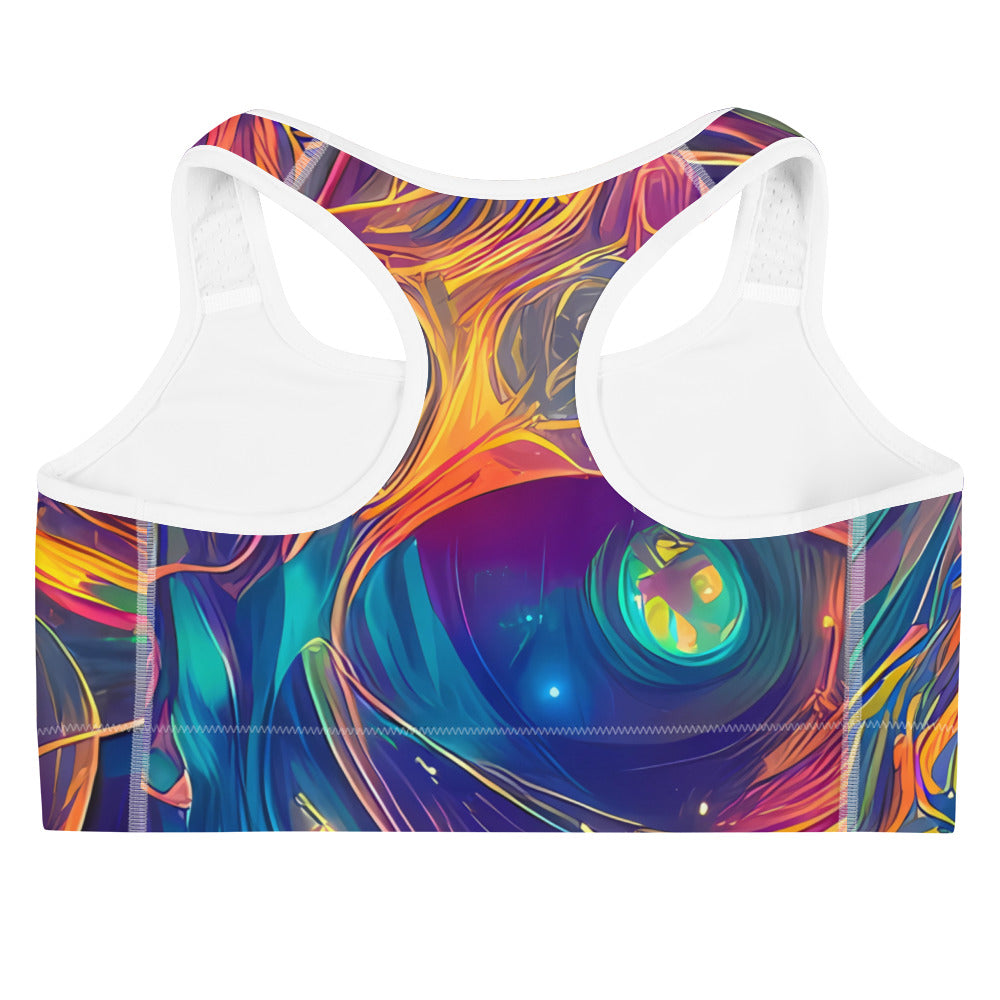 Ignite your workout with our stunning "Artgerm Blaze" Sports Bra, where vibrant hues of fiery oranges, deep blues, and vivid purples come together in a dynamic tapestry of energy and movement. This AI-designed piece not only showcases your unique style but also embodies the spirit of creativity and confidence. Perfect for music festivals, creative gatherings, or your daily workout, this sports bra ensures you stay both stylish and supported, no matter the intensity of your routine.