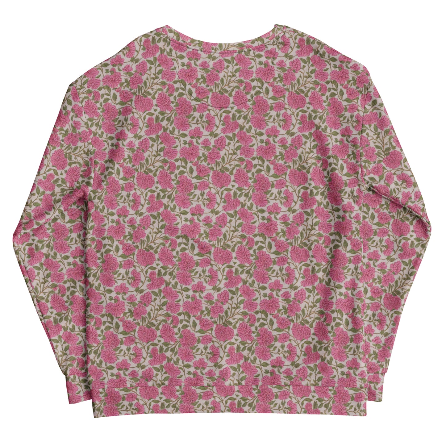 Step into a world of whimsy and elegance with our "Blossom Symphony" all-over print sweatshirt. Featuring vibrant pink florals and delicate green leaves on a soft neutral background, this unique design captures the essence of vintage botanical artistry, perfect for those who embrace a free-spirited lifestyle. Crafted for comfort and style, this sweatshirt is your go-to piece for spring garden parties and summer brunches, ensuring you stand out with every wear.