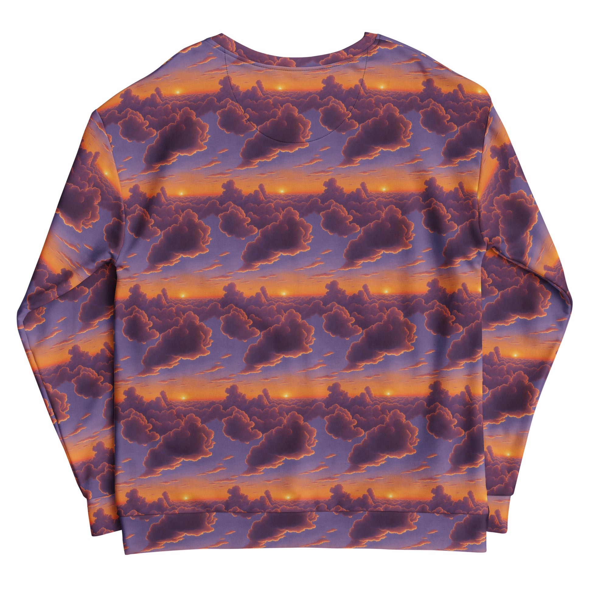 Step into a world of whimsy and tranquility with our "Cotton Candy Dreams" all-over print sweatshirt. Adorned with a dreamy sunset palette of soft purples, warm oranges, and gentle pinks, this unique design captures the essence of a serene sky at dusk, making it the perfect companion for artistic gatherings, garden parties, or leisurely beach strolls. Wrap yourself in the luxurious comfort of our eco-conscious fabric, and let your style shine with a piece that's as playful as it is chic.