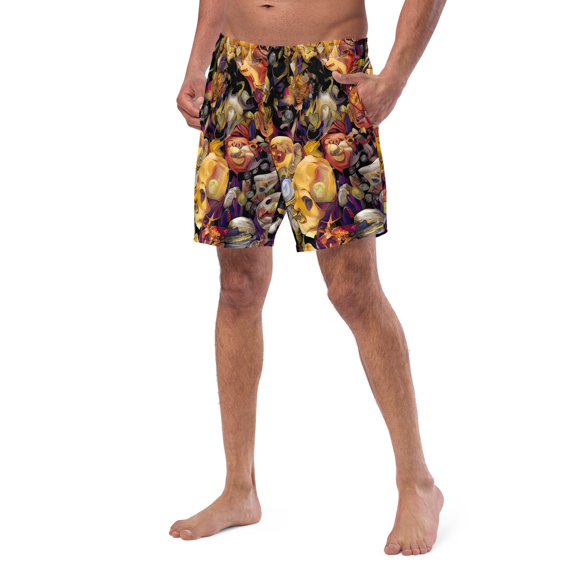 Embrace the art of summer with our exclusive swim trunks, featuring the enchanting "Arcimboldo Abundance" design. Immerse yourself in the playful juxtaposition of autumnal splendor and surreal artistry, as each piece is a canvas of warm golds, deep purples, and cool silver tones that dance across the fabric. Perfect for art lovers and fashion enthusiasts alike, these trunks are a statement piece that celebrates the harvest season with a touch of baroque whimsy and modern flair.