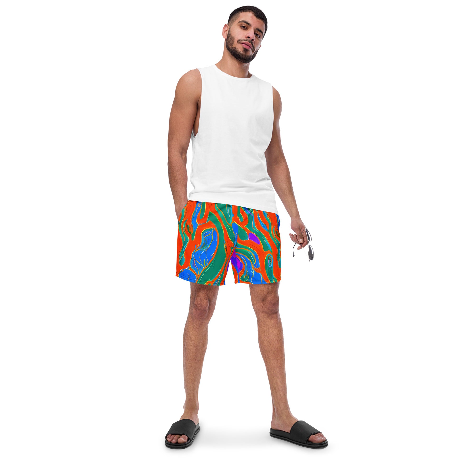 Unleash your inner artist this summer with our "Childish Strokes" swim trunks, where vibrant energy meets effortless style! Inspired by the bold, free-spirited designs of Billy Childish, these trunks feature a captivating array of undulating lines in electric orange, green, and blue, accented with playful pops of pink. Perfect for beach days, pool parties, or any creative gathering, these trunks are designed for those who embrace artistic audacity and want to make a splash in every sense!