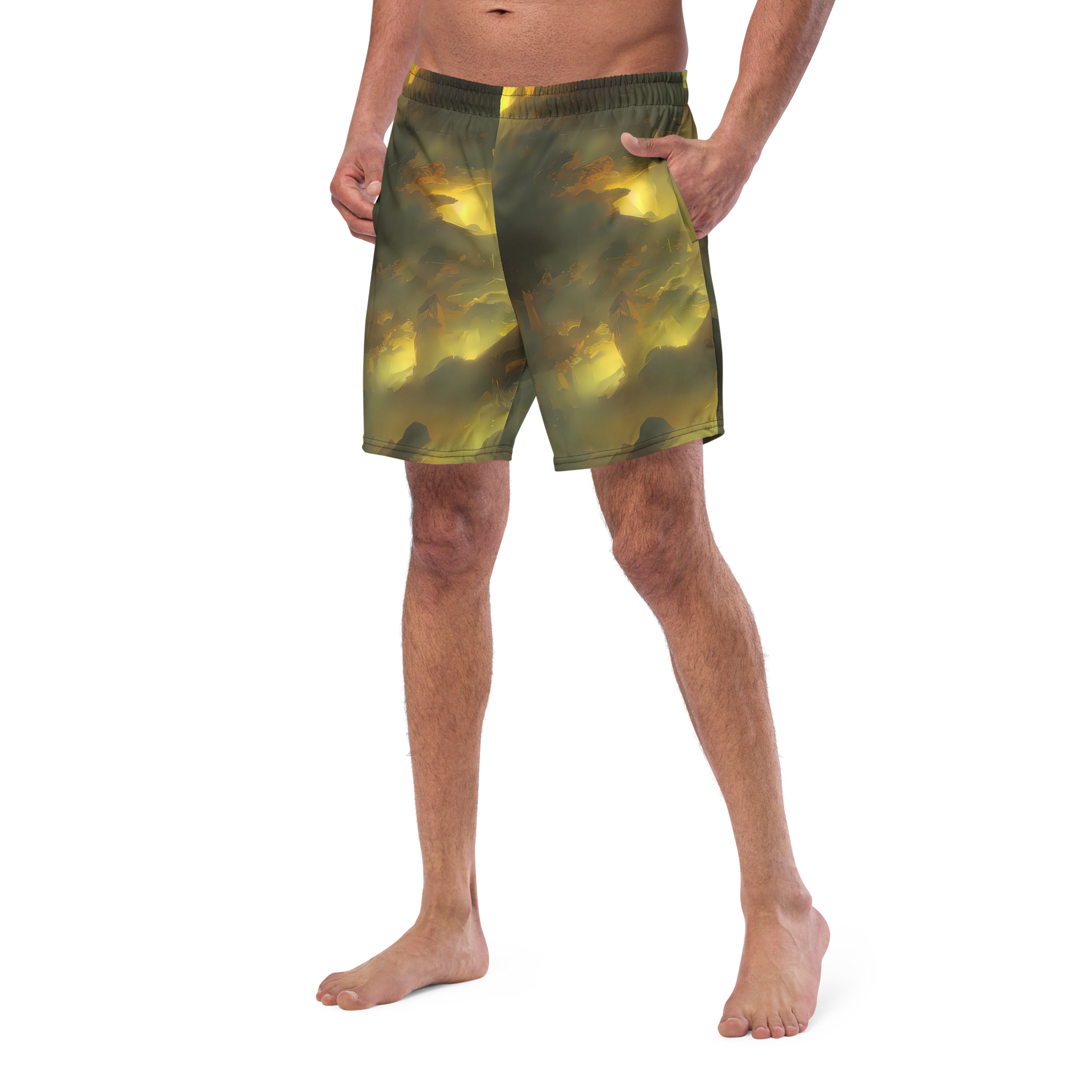 Make waves this summer with our stunning "Crimson Tide" swim trunks, where art meets adventure! Inspired by the dramatic seascapes of Andreas Achenbach and the luminous landscapes of Thomas Moran, these trunks feature a mesmerizing blend of warm golden hues and deep crimson shades that capture the essence of dynamic movement and raw emotion. Perfect for the bold spirit who wants to stand out, these trunks promise not only style but also comfort and functionality for all your beachside escapades!