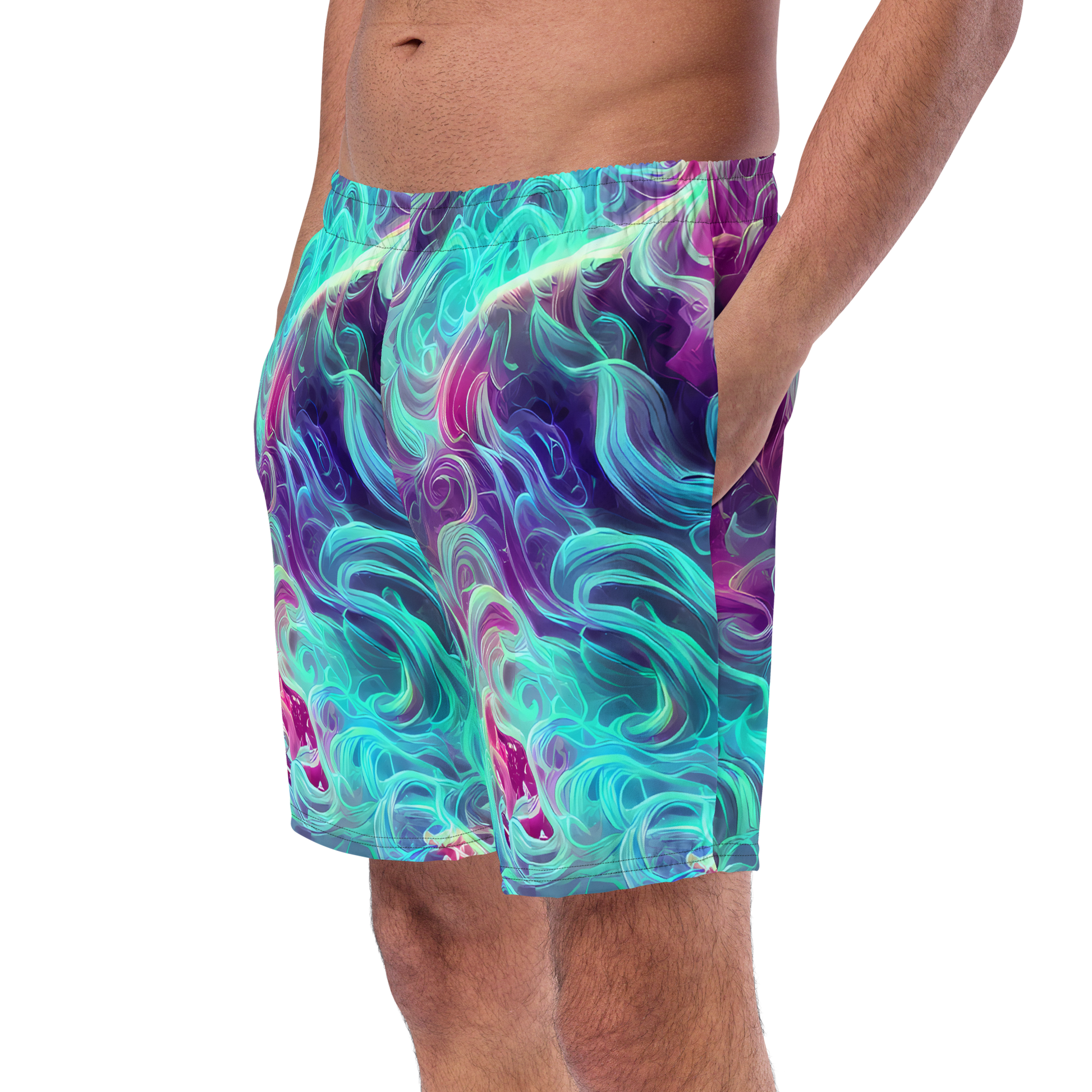 Seize the day with a touch of the cosmos. Slide into your new swim trunks and embrace the waves in unparalleled style!