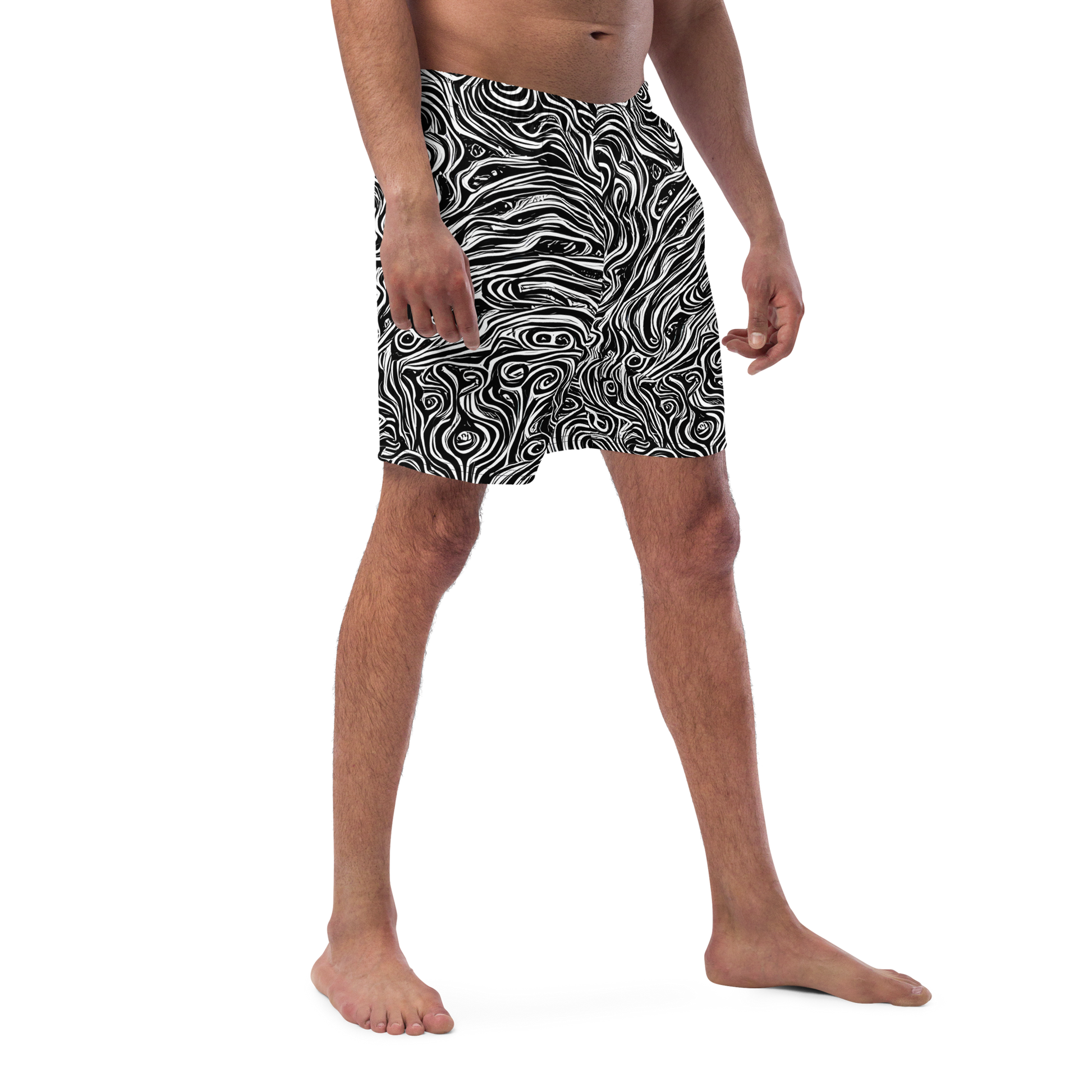 Unleash your artistic spirit this summer with our "Inky Whispers" swim trunks, a striking blend of bold black and white patterns that evoke fluid motion and mystery. Designed for the modern individual who thrives on creativity and sophistication, these swim trunks are not just a fashion statement; they're an expression of your unique style. Perfect for beach outings or poolside gatherings, they promise to keep you comfortable and chic all day long.