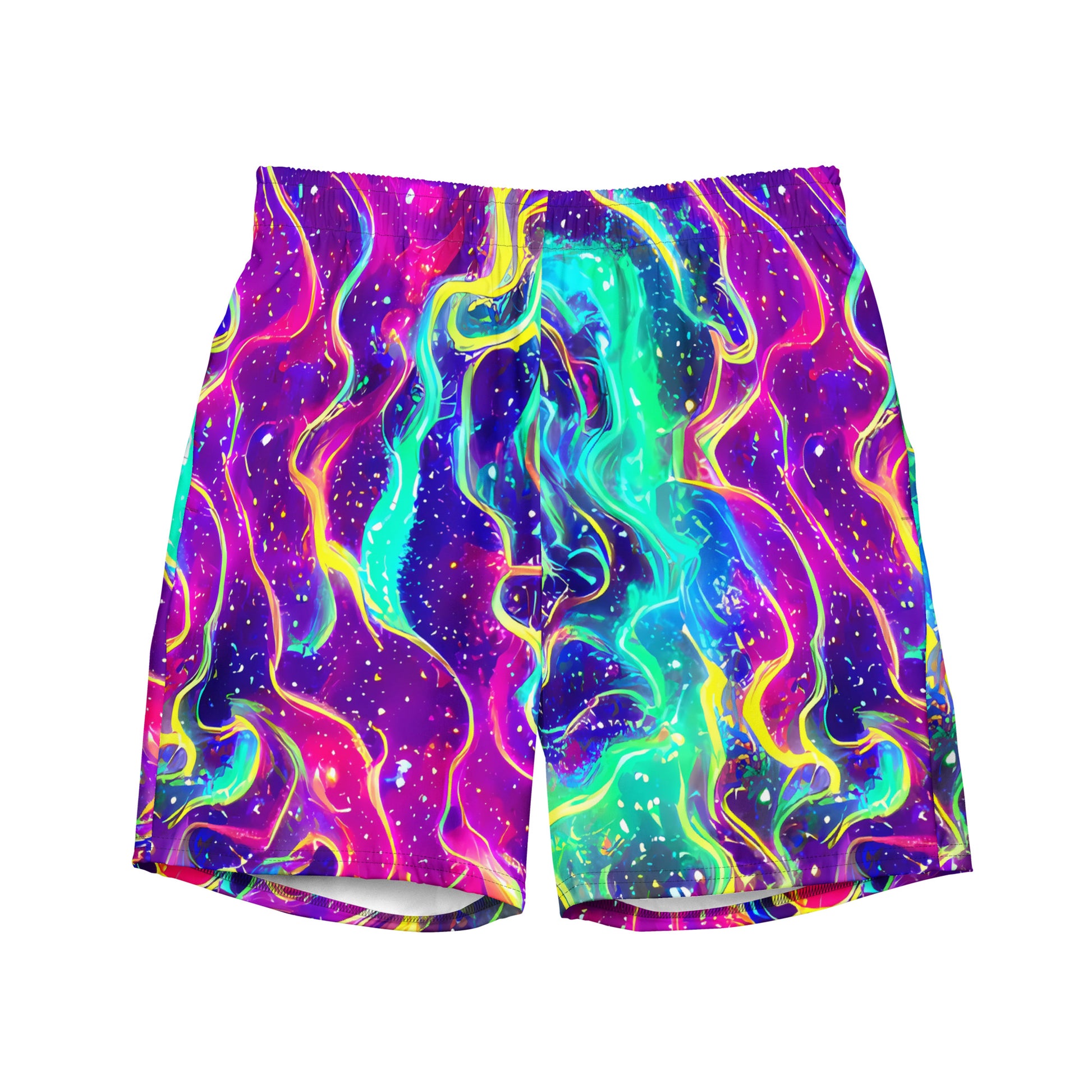 Unleash your inner adventurer with our "Liquid Light Show" swim trunks, where vibrant neon hues swirl like liquid energy across a cosmic canvas. Crafted for those who dare to stand out, these trunks capture the essence of summer celebrations and artistic gatherings, making you the center of attention at the beach or pool. With a perfect blend of style and functionality, you'll not only look good but feel great too!