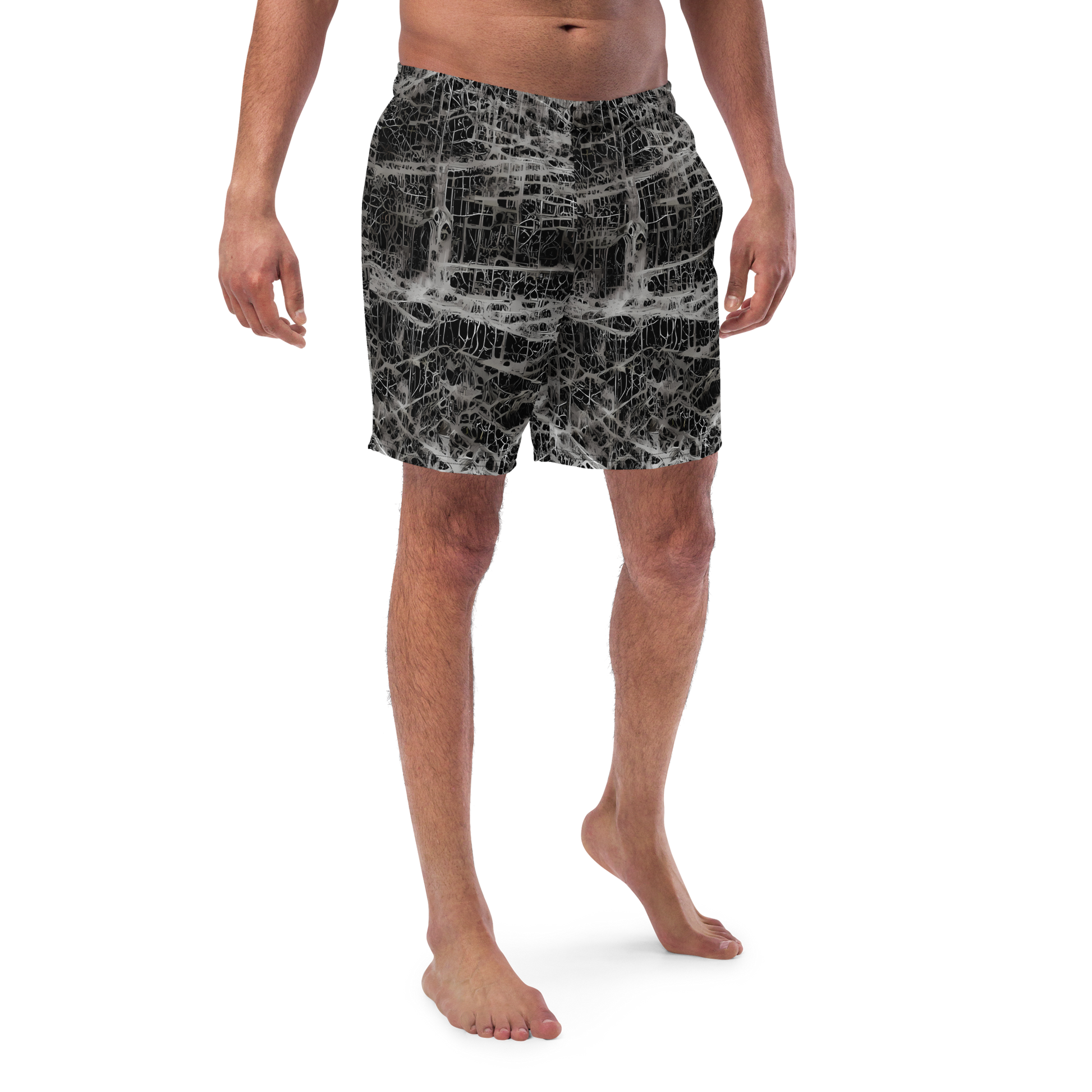 Embrace the tranquil sophistication of our swim trunks, featuring an exclusive pattern that captures the essence of serene landscapes in a monochromatic weave. Perfect for the art enthusiast and the fashion minimalist, these trunks are a subtle nod to contemporary artistry, offering a contemplative vibe for any setting. Whether you're attending a modern art gala by the sea or simply seeking introspection along the shore, our trunks are the embodiment of style and depth.