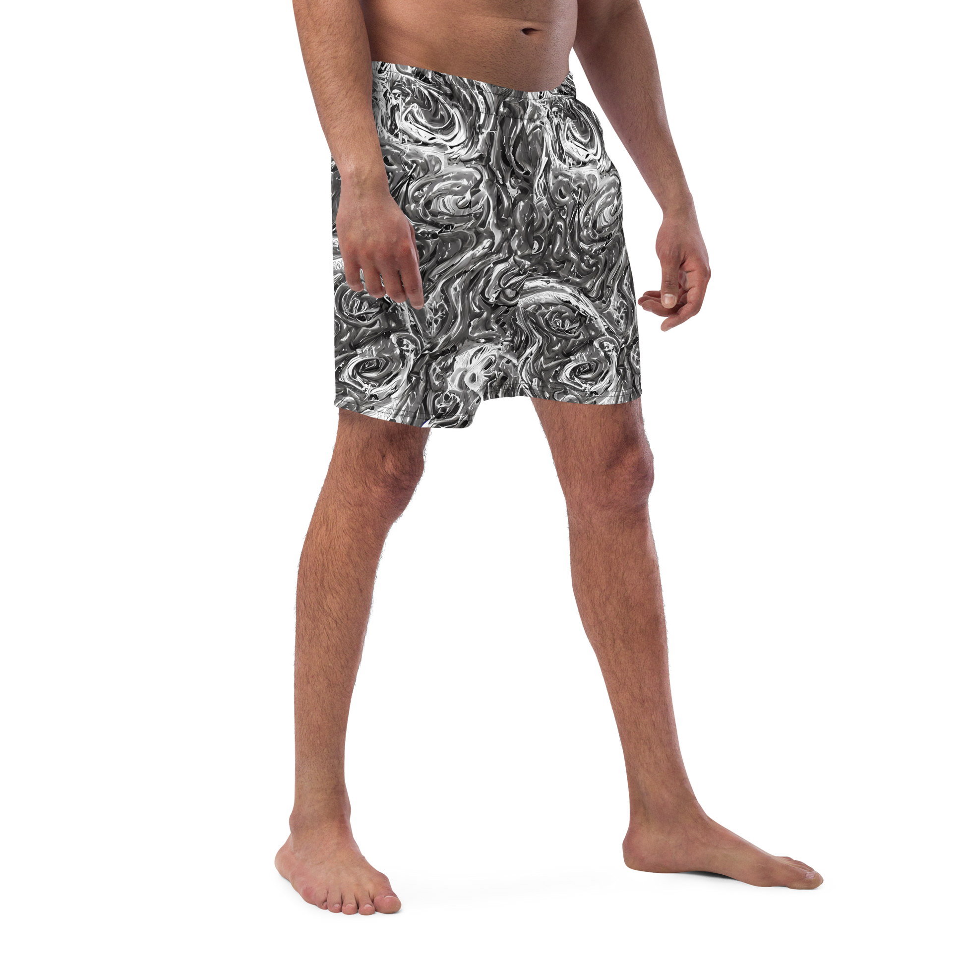 Unleash your inner artist this summer with our "Nebulous Night" swim trunks, where mesmerizing grayscale textures swirl in a dreamlike pattern, inspired by the enigmatic allure of the night. These AI-designed trunks are not just a fashion statement; they are a unique expression of creativity and style. Perfect for making a splash at the beach or pool, you'll feel both comfortable and confident as you embrace the magic of summer under the sun!