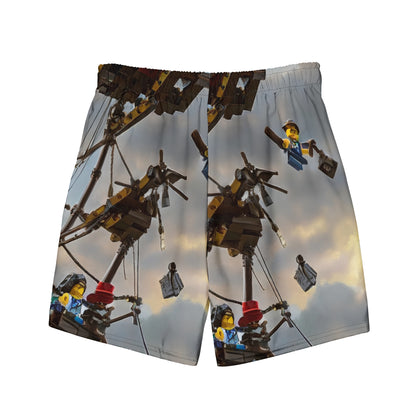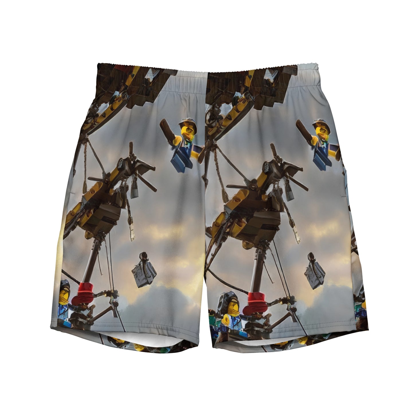 Embark on a whimsical journey with our "Skyward Adventure" swim trunks, where vibrant Lego-inspired figures dance against a dreamy backdrop of soft clouds. Perfect for the imaginative spirit, these trunks not only make a bold fashion statement but also promise comfort and functionality for all your summer escapades. Dive into the playful essence of summer and be the life of the beach or pool party!