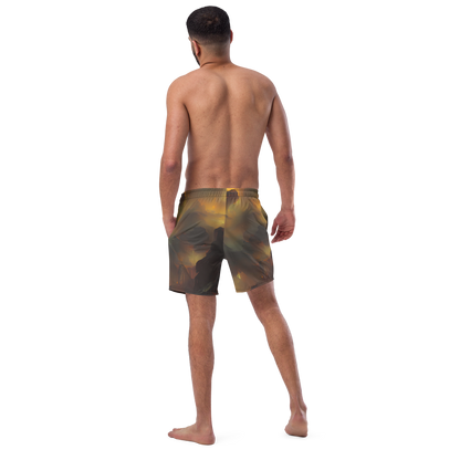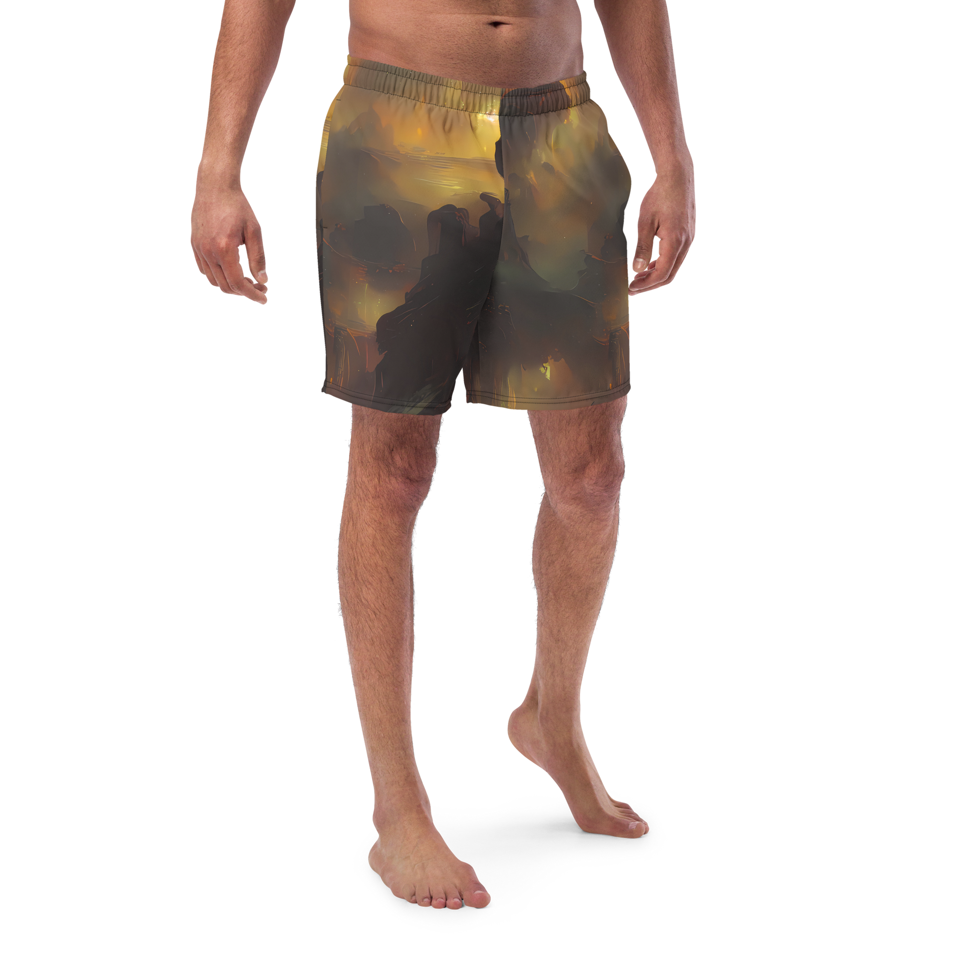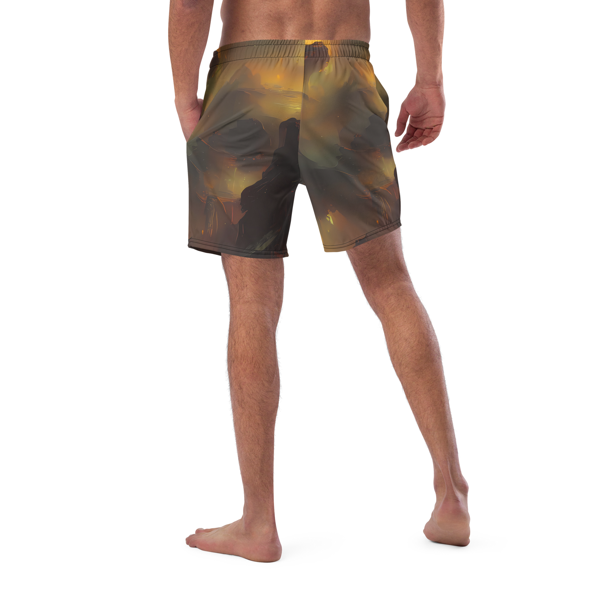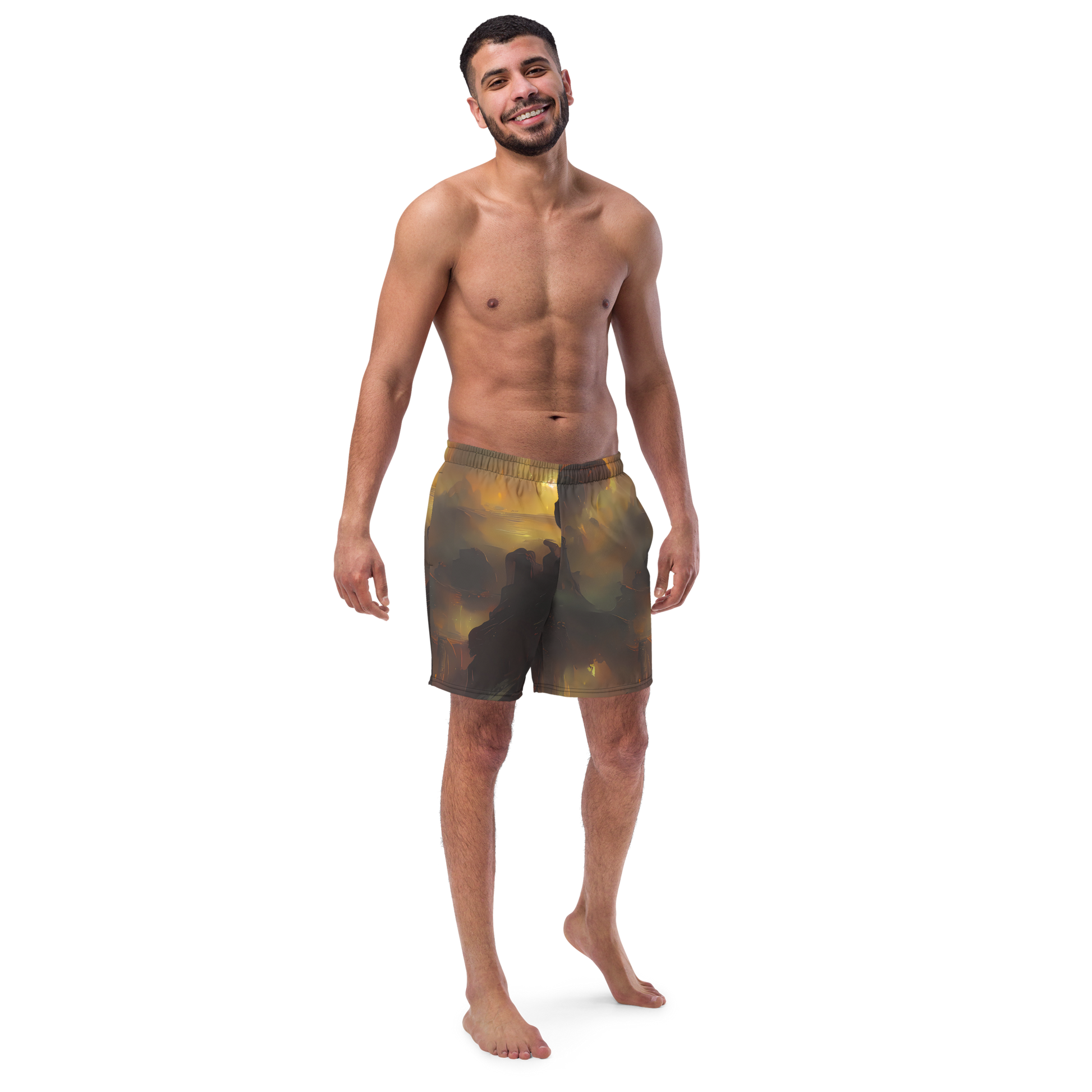 Immerse yourself in the essence of untamed beauty with our "Solar Torrent" swim trunks, where art and adventure meet. Inspired by the dramatic seascapes of Achenbach and the radiant skies of Moran, these trunks are a canvas of swirling earthy tones, deep browns, and vivid oranges. Ideal for the bold spirit eager to embody the romantic energy of nature, they're perfect for making a statement at artistic events or reveling in the autumnal ambiance by the water.