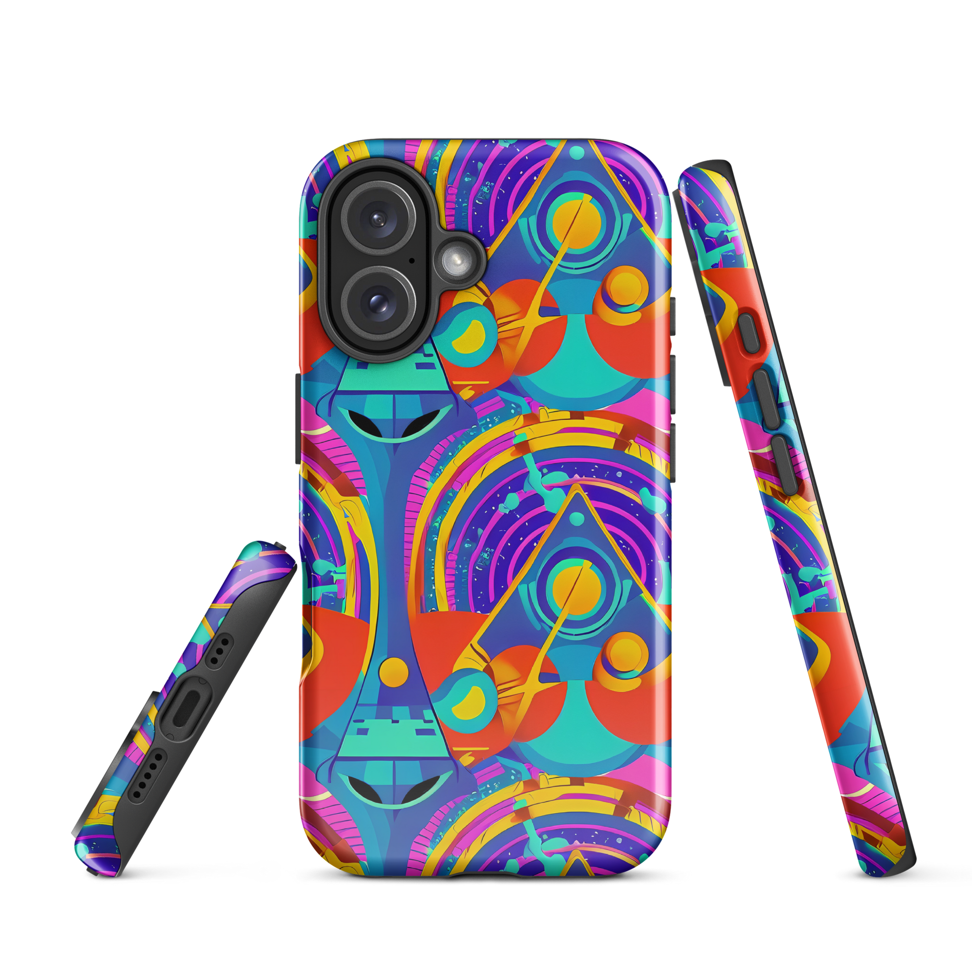 Unleash your adventurous spirit with our "Blast of Color" Tough Case for iPhone®. This electrifying case features a dynamic pattern of electric blue, neon pink, and fiery orange, interwoven with geometric shapes and cosmic swirls. Perfect for those who thrive on creativity and bold expression, this case not only provides superior dual-layer protection but also transforms your phone into a vibrant work of art. Stand out at summer festivals or avant-garde art events with this unique, AI-art generated design, custom cut and handmade by our experts. Keep your phone both stylish and safe, all year round!